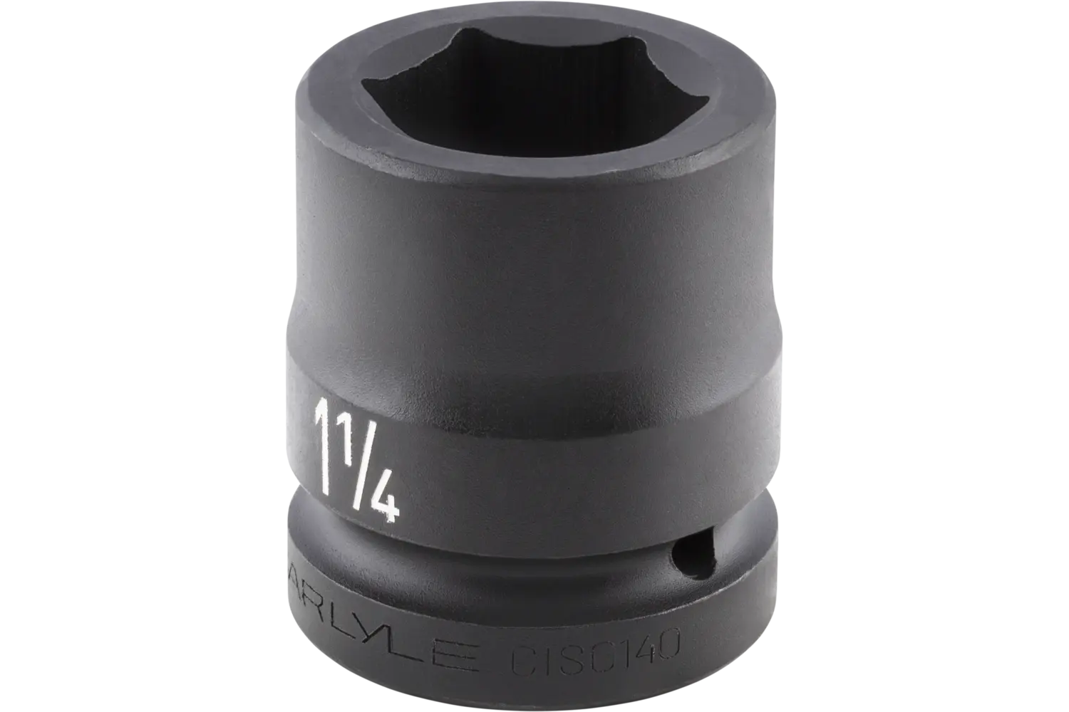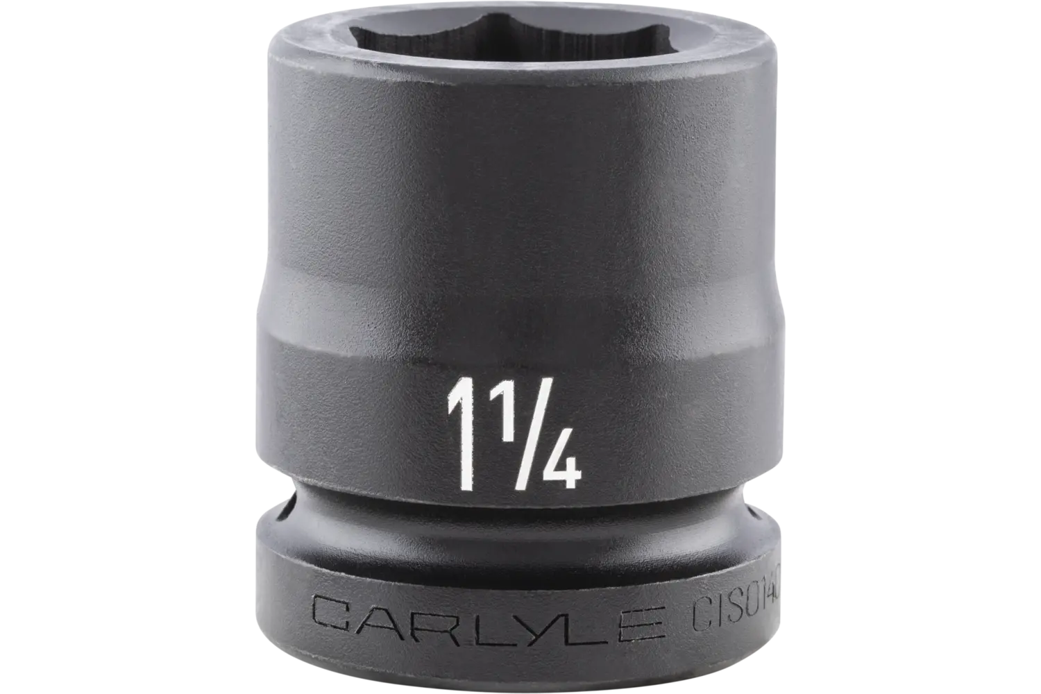 The Carlyle 1 in. Drive Standard Depth Impact Sockets - SAE are reliable tools for automotive and industrial applications. Made from chrome molybdenum alloy steel, these sockets are designed for strength and durability. The radius corner design improves grip on fasteners, while chamfered openings allow for quick and efficient use. With deep-rolled stamped markings for easy identification, these sockets are a practical and long-lasting addition to any toolkit.