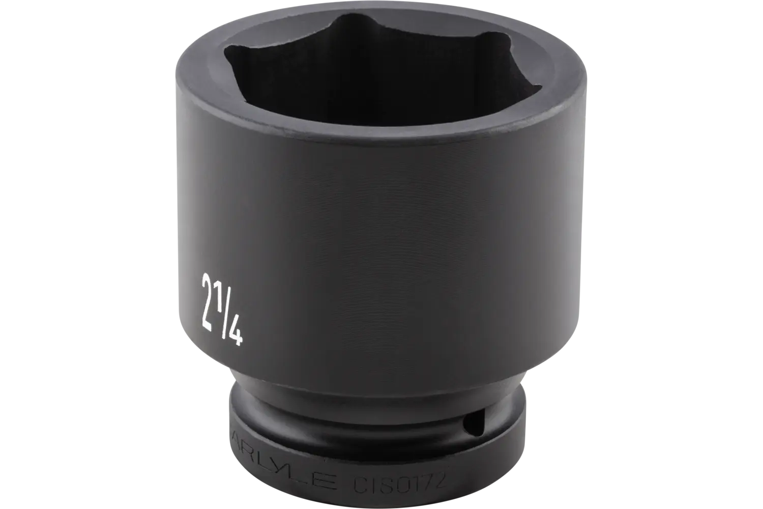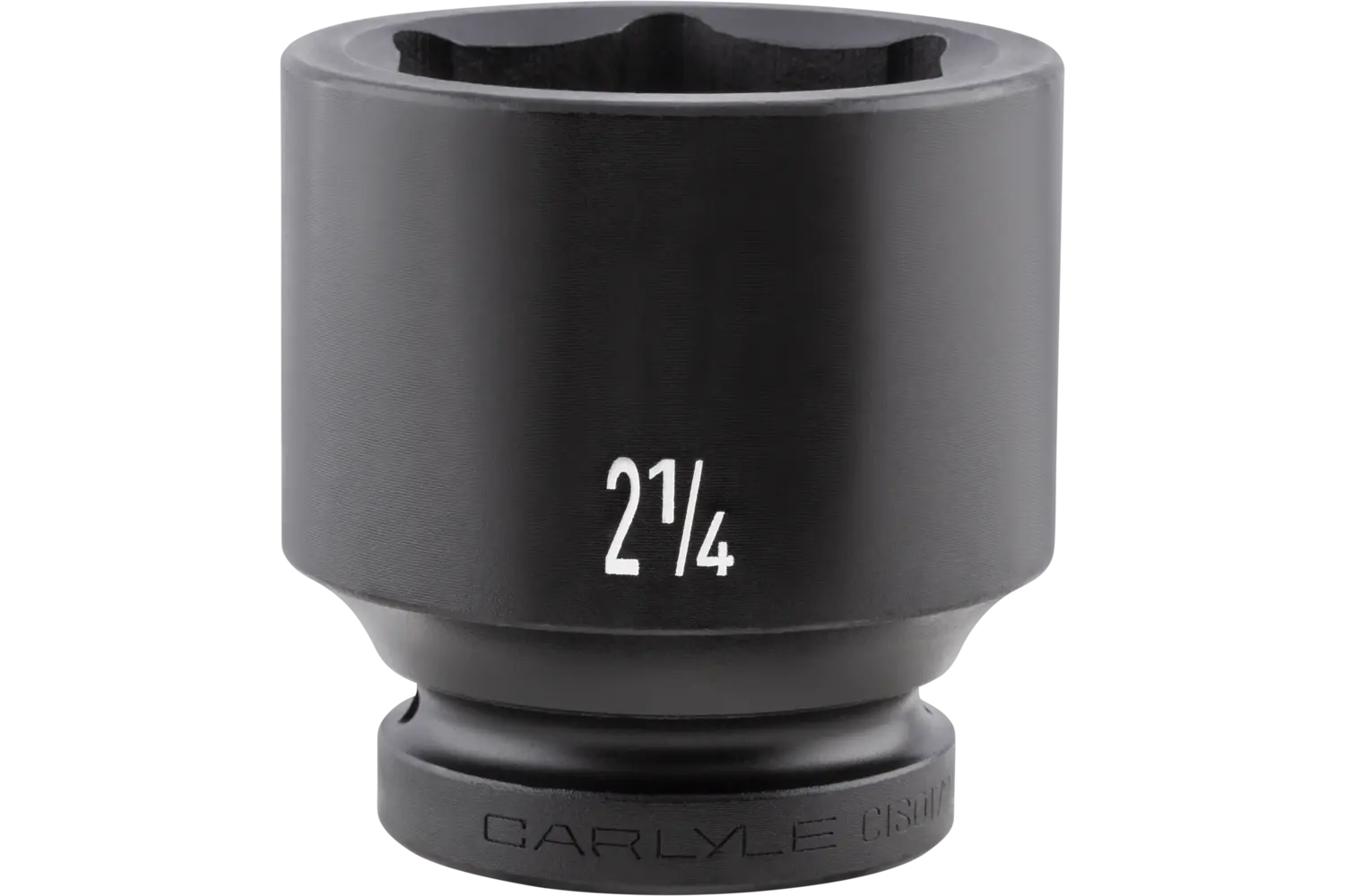 The Carlyle 1 in. Drive Standard Depth Impact Sockets - SAE are reliable tools for automotive and industrial applications. Made from chrome molybdenum alloy steel, these sockets are designed for strength and durability. The radius corner design improves grip on fasteners, while chamfered openings allow for quick and efficient use. With deep-rolled stamped markings for easy identification, these sockets are a practical and long-lasting addition to any toolkit.
