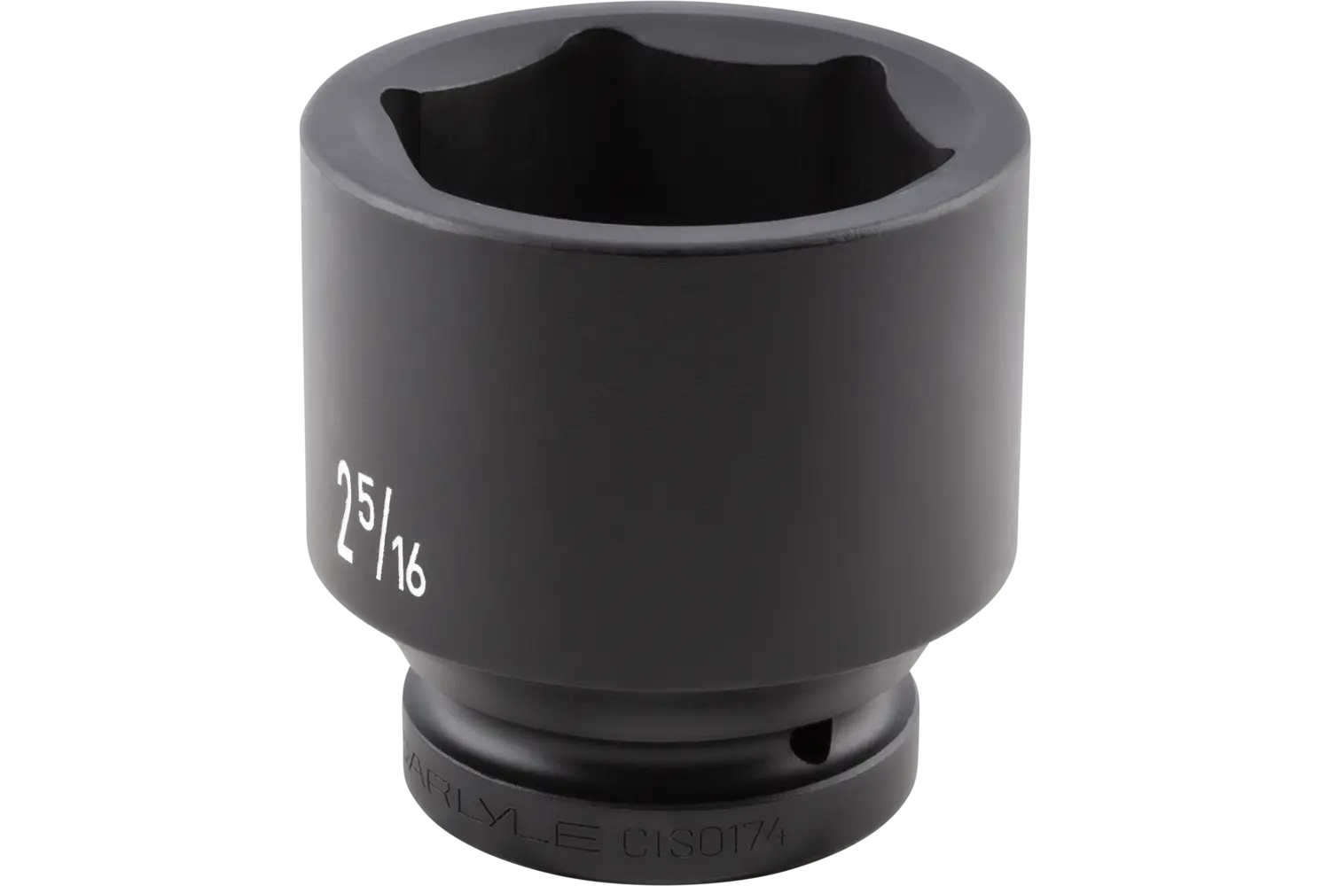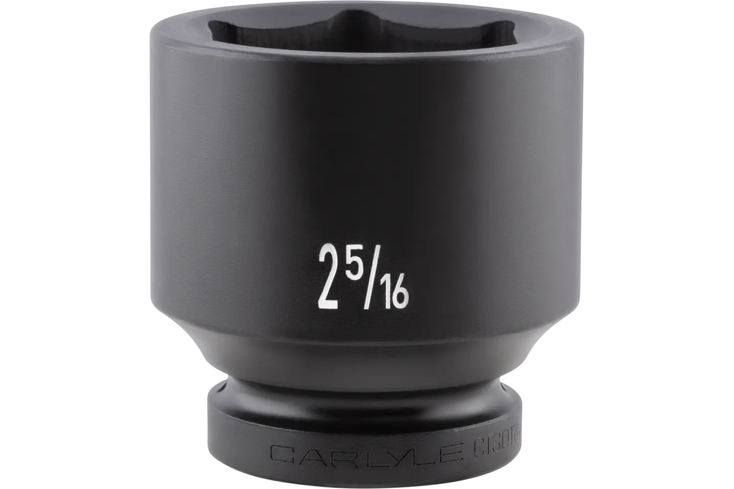 The Carlyle 1 in. Drive Standard Depth Impact Sockets - SAE are reliable tools for automotive and industrial applications. Made from chrome molybdenum alloy steel, these sockets are designed for strength and durability. The radius corner design improves grip on fasteners, while chamfered openings allow for quick and efficient use. With deep-rolled stamped markings for easy identification, these sockets are a practical and long-lasting addition to any toolkit.