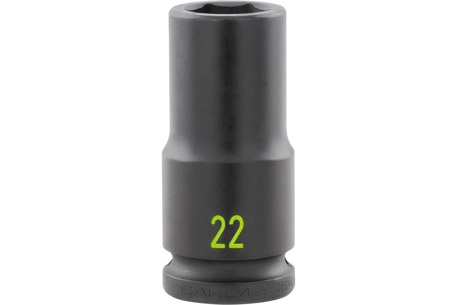 The Carlyle 3/4 in. Drive Deep Impact Sockets are crafted for professionals and DIYers who need reliable tools for challenging jobs. Forged from chrome molybdenum alloy steel, these metric sockets deliver durability and strength. The radius corner design grips fasteners securely, reducing wear and rounding, while chamfered openings allow for quick and easy placement. With deep-rolled markings for easy identification, these sockets are a practical addition to any toolkit for a variety of demanding applications.