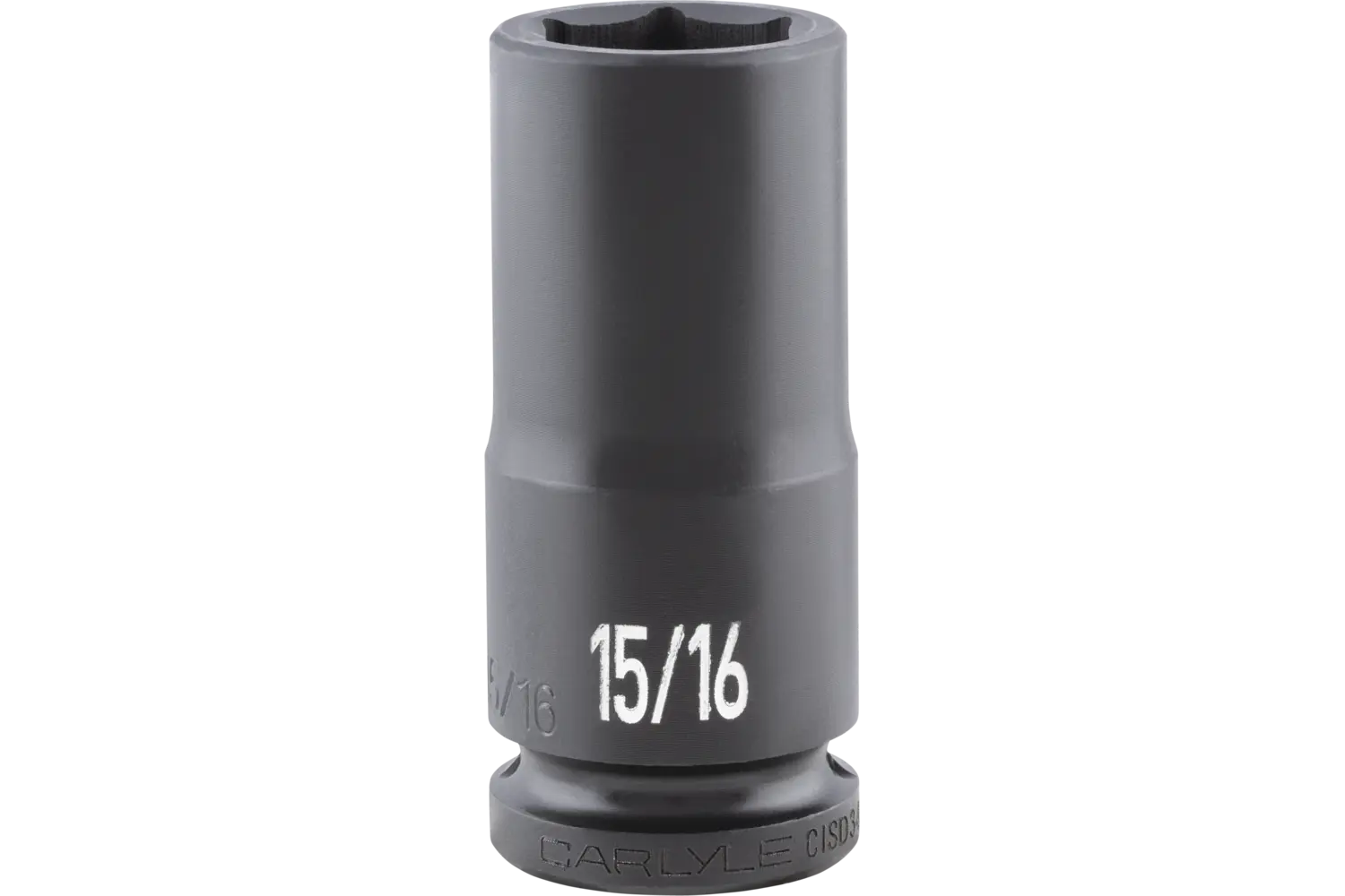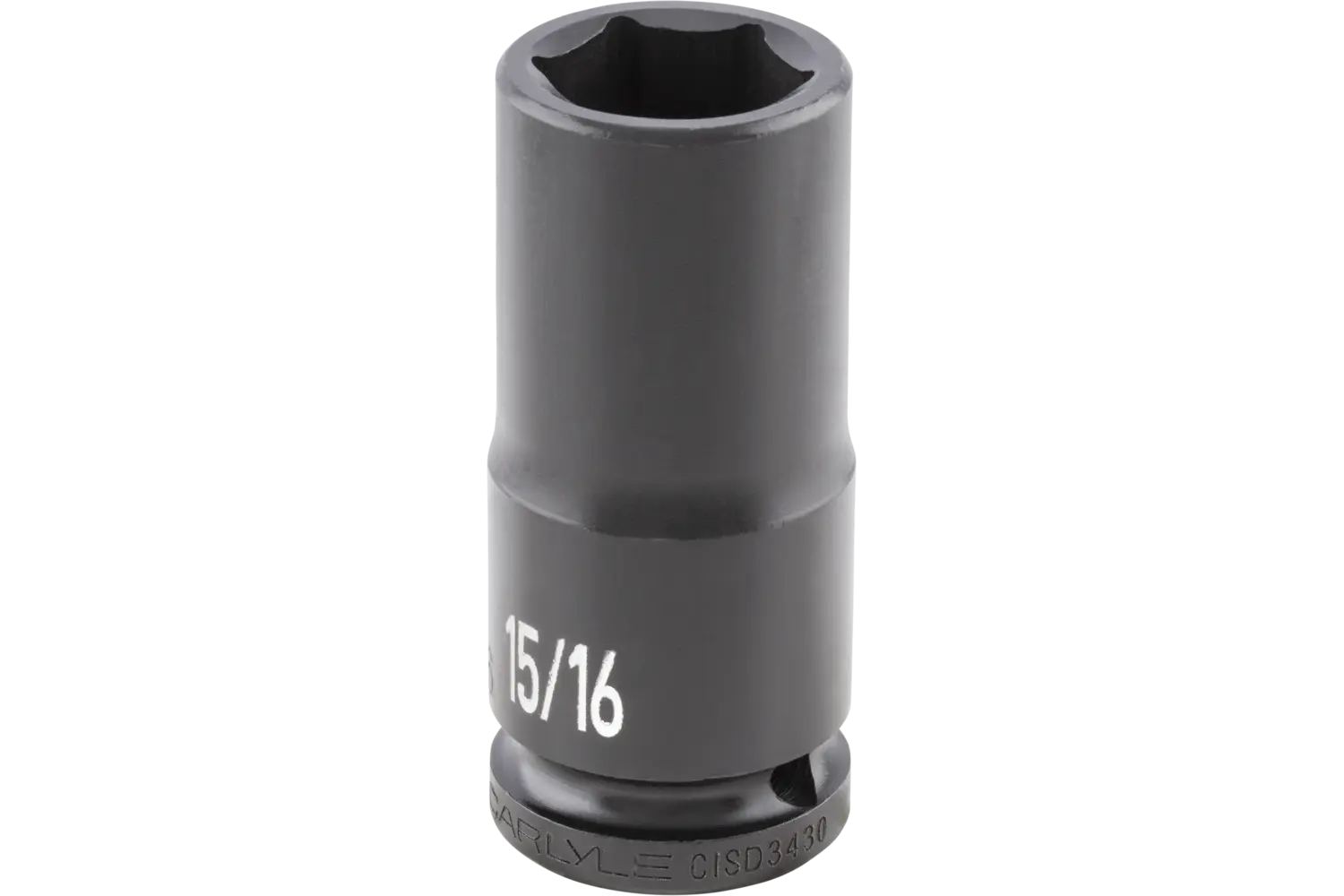 The Carlyle 3/4 in. Drive Deep Impact Socket is a versatile tool designed to handle tough jobs with strength and precision. Made from chrome molybdenum alloy steel, this socket is built to last. Its radius corner design improves grip on fasteners and reduces wear, while chamfered openings make placement fast and efficient. Designed for demanding tasks, this deep socket is a reliable choice for professionals and DIYers alike, ready to tackle a variety of applications.