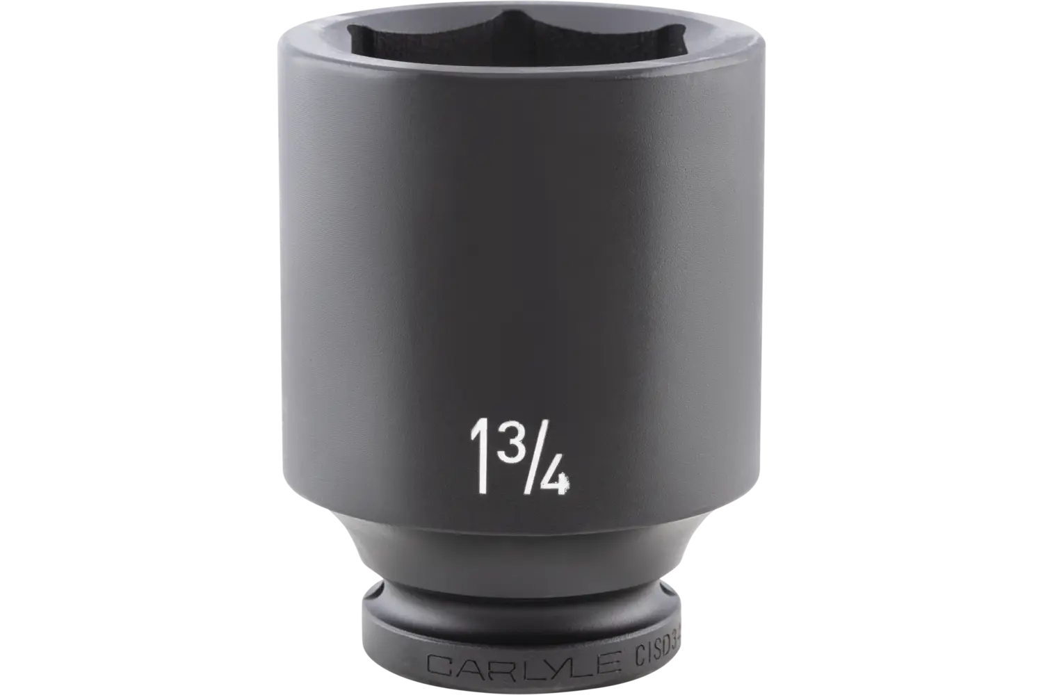 The Carlyle 3/4 in. Drive Deep Impact Socket is a versatile tool designed to handle tough jobs with strength and precision. Made from chrome molybdenum alloy steel, this socket is built to last. Its radius corner design improves grip on fasteners and reduces wear, while chamfered openings make placement fast and efficient. Designed for demanding tasks, this deep socket is a reliable choice for professionals and DIYers alike, ready to tackle a variety of applications.