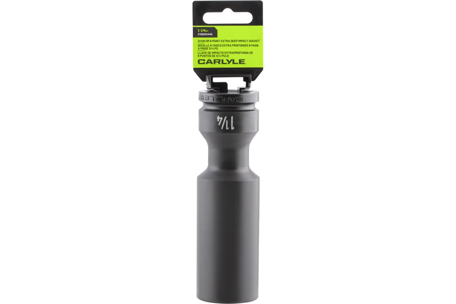 The Carlyle 3/4 in. Drive Extra Deep Impact Socket is a durable and versatile tool for professionals and DIYers. Made from chrome molybdenum alloy steel, this socket is built to handle tough jobs with precision. Its radius corner design grips fasteners securely and reduces wear, while chamfered openings allow for quick and easy placement. With its extra-deep design, this socket is ideal for a variety of applications, making it a reliable choice for challenging tasks.