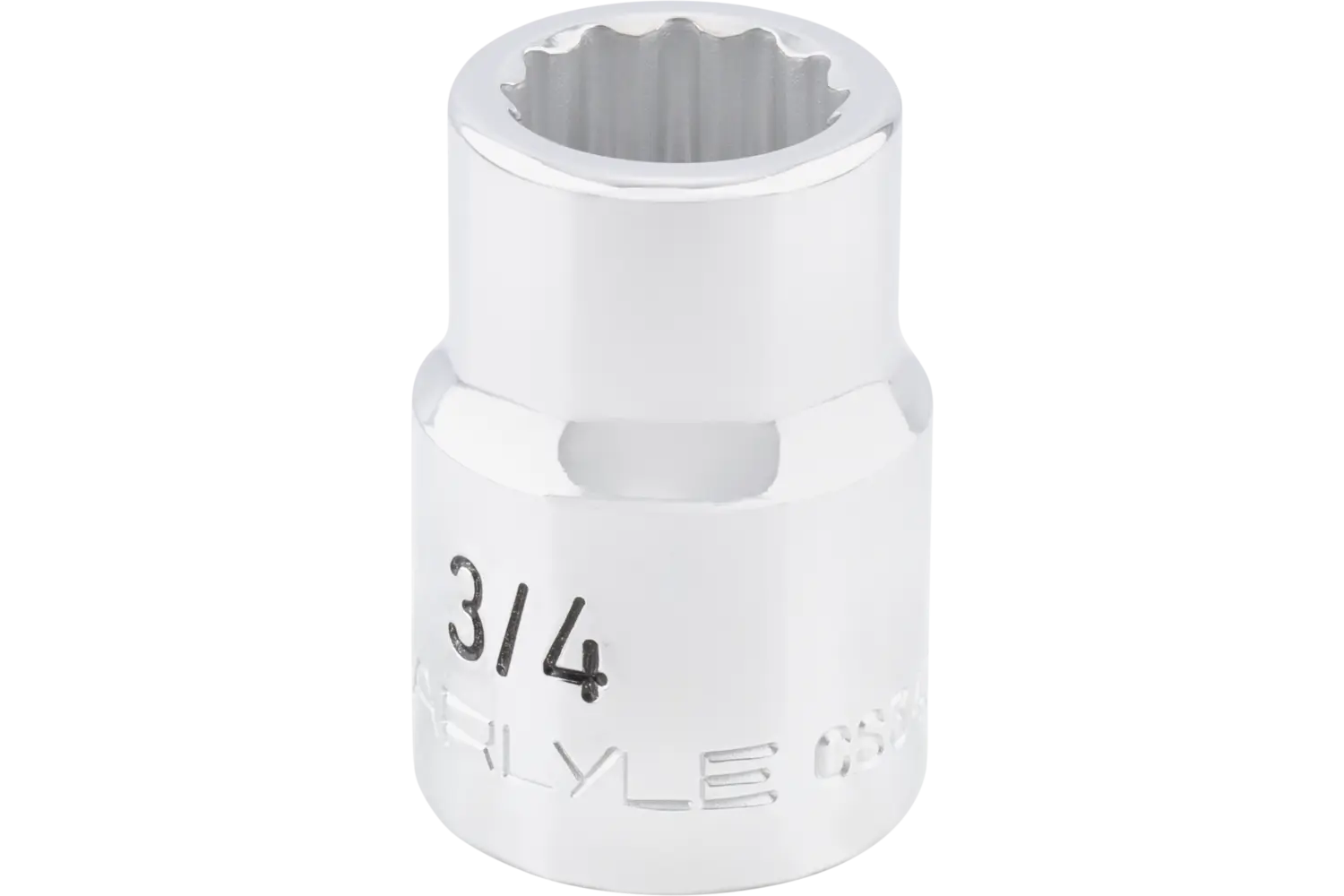 The Carlyle 3/4 in. Drive Standard Depth Chrome Socket is a reliable tool for tackling a wide range of tasks. Forged from chrome vanadium alloy steel, this socket is designed for strength and durability. Its 12-point radius corner design reduces wear and improves grip on fasteners, while the polished chrome finish resists rust and corrosion. Deep-rolled markings make size identification quick and easy. Whether you're a professional or a DIYer, this socket is a dependable addition to your toolbox, ready to handle tough tasks in the shop or garage.