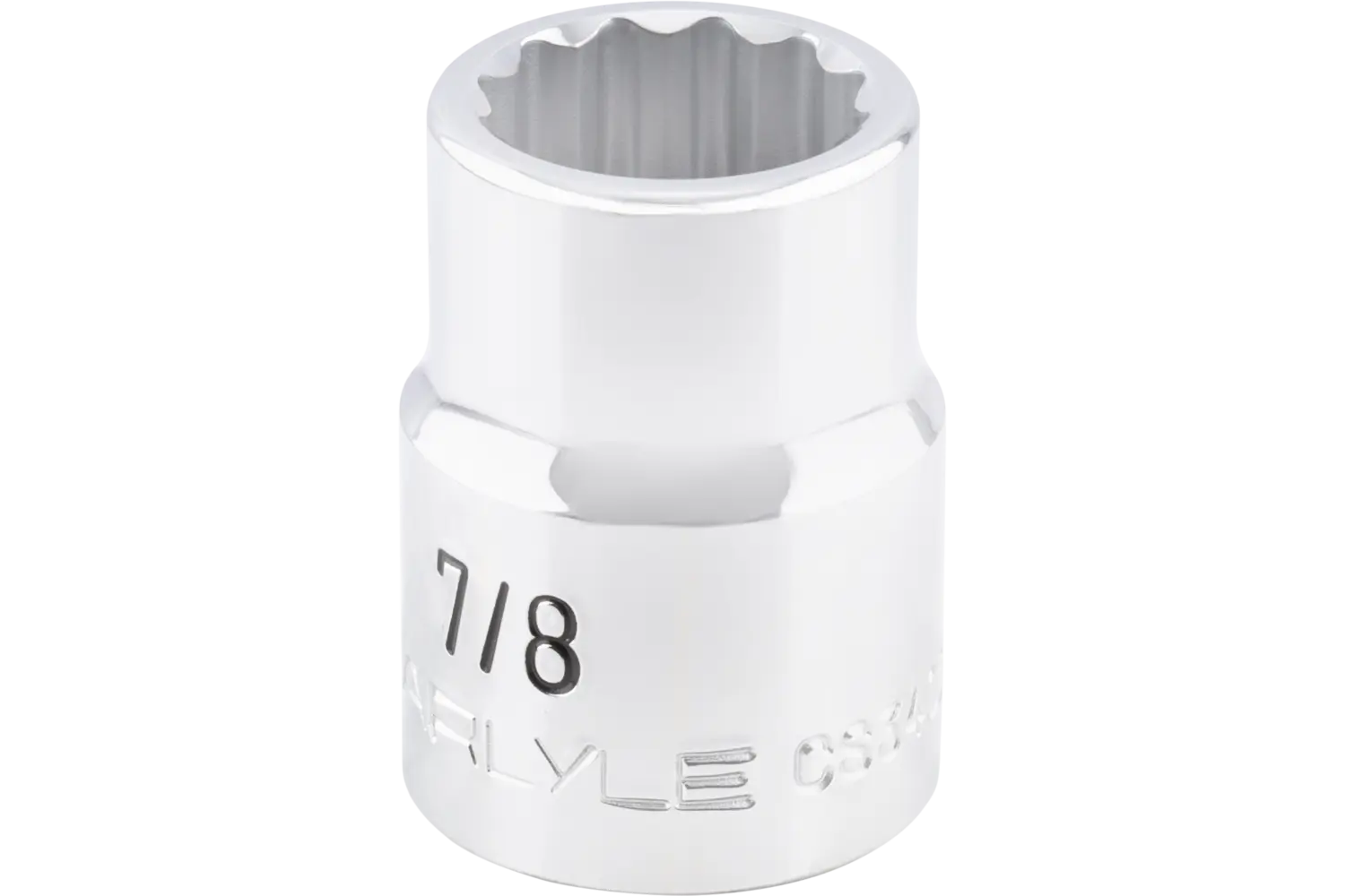 The Carlyle 3/4 in. Drive Standard Depth Chrome Socket is a reliable tool for tackling a wide range of tasks. Forged from chrome vanadium alloy steel, this socket is designed for strength and durability. Its 12-point radius corner design reduces wear and improves grip on fasteners, while the polished chrome finish resists rust and corrosion. Deep-rolled markings make size identification quick and easy. Whether you're a professional or a DIYer, this socket is a dependable addition to your toolbox, ready to handle tough tasks in the shop or garage.