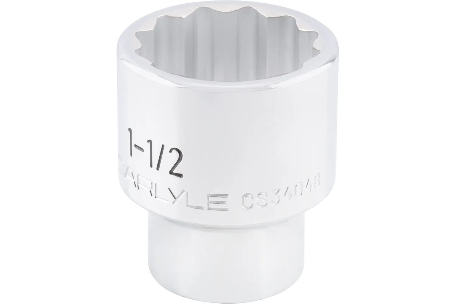 The Carlyle 3/4 in. Drive Standard Depth Chrome Socket is a reliable tool for tackling a wide range of tasks. Forged from chrome vanadium alloy steel, this socket is designed for strength and durability. Its 12-point radius corner design reduces wear and improves grip on fasteners, while the polished chrome finish resists rust and corrosion. Deep-rolled markings make size identification quick and easy. Whether you're a professional or a DIYer, this socket is a dependable addition to your toolbox, ready to handle tough tasks in the shop or garage.