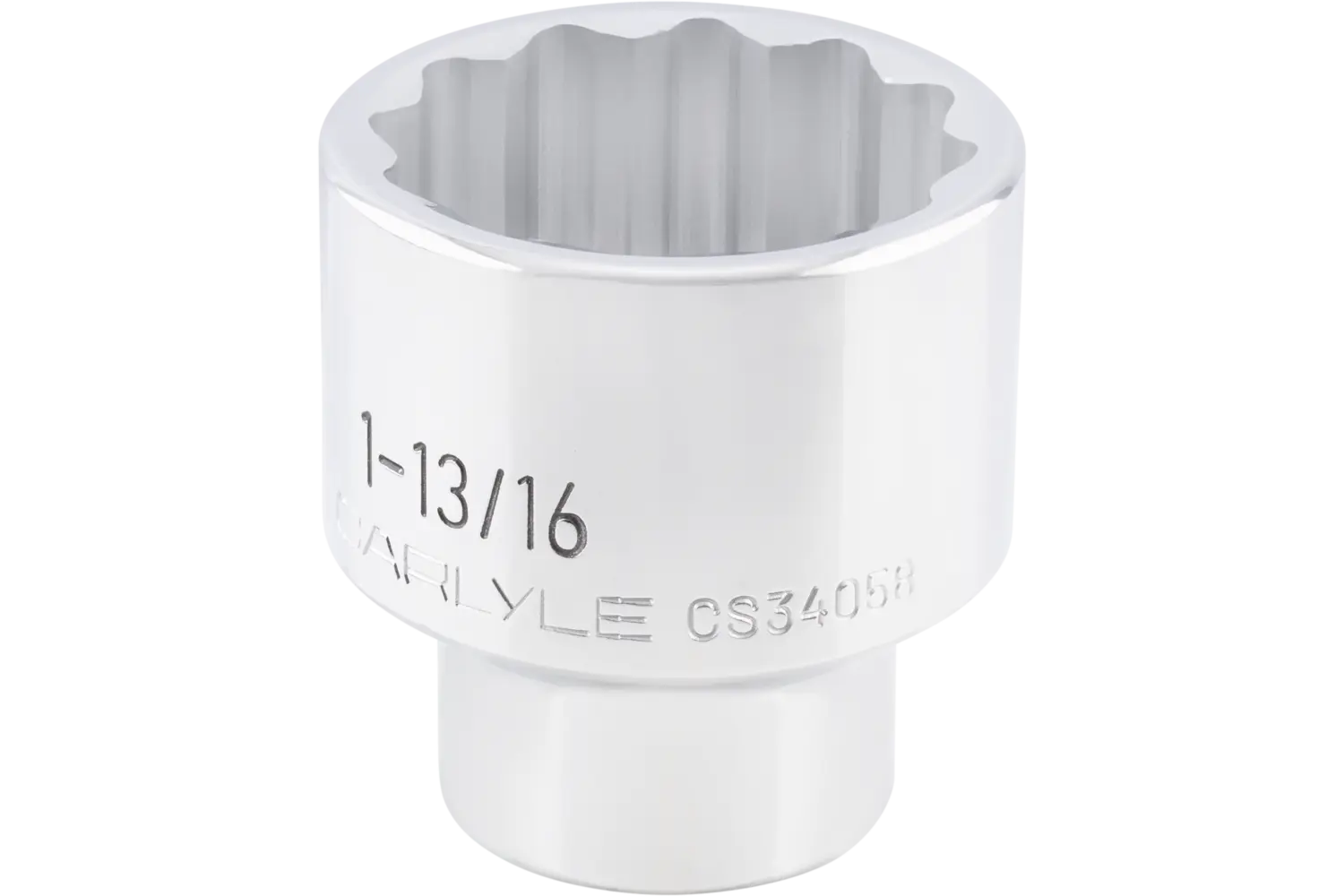 The Carlyle 3/4 in. Drive Standard Depth Chrome Socket is a reliable tool for tackling a wide range of tasks. Forged from chrome vanadium alloy steel, this socket is designed for strength and durability. Its 12-point radius corner design reduces wear and improves grip on fasteners, while the polished chrome finish resists rust and corrosion. Deep-rolled markings make size identification quick and easy. Whether you're a professional or a DIYer, this socket is a dependable addition to your toolbox, ready to handle tough tasks in the shop or garage.