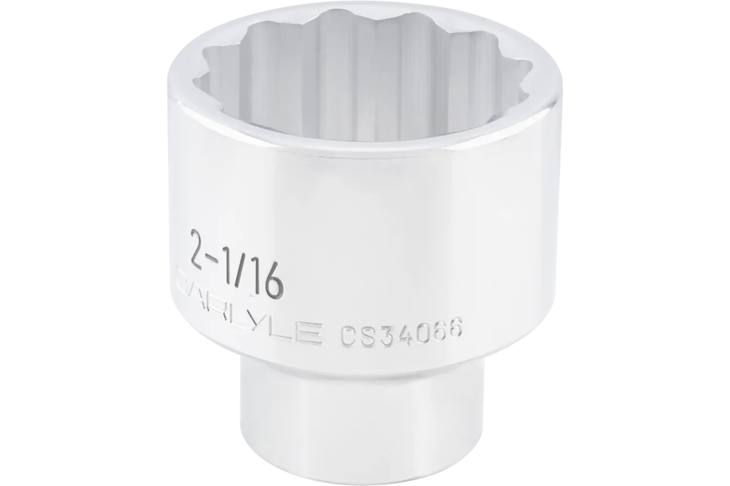 The Carlyle 3/4 in. Drive Standard Depth Chrome Socket is a reliable tool for tackling a wide range of tasks. Forged from chrome vanadium alloy steel, this socket is designed for strength and durability. Its 12-point radius corner design reduces wear and improves grip on fasteners, while the polished chrome finish resists rust and corrosion. Deep-rolled markings make size identification quick and easy. Whether you're a professional or a DIYer, this socket is a dependable addition to your toolbox, ready to handle tough tasks in the shop or garage.