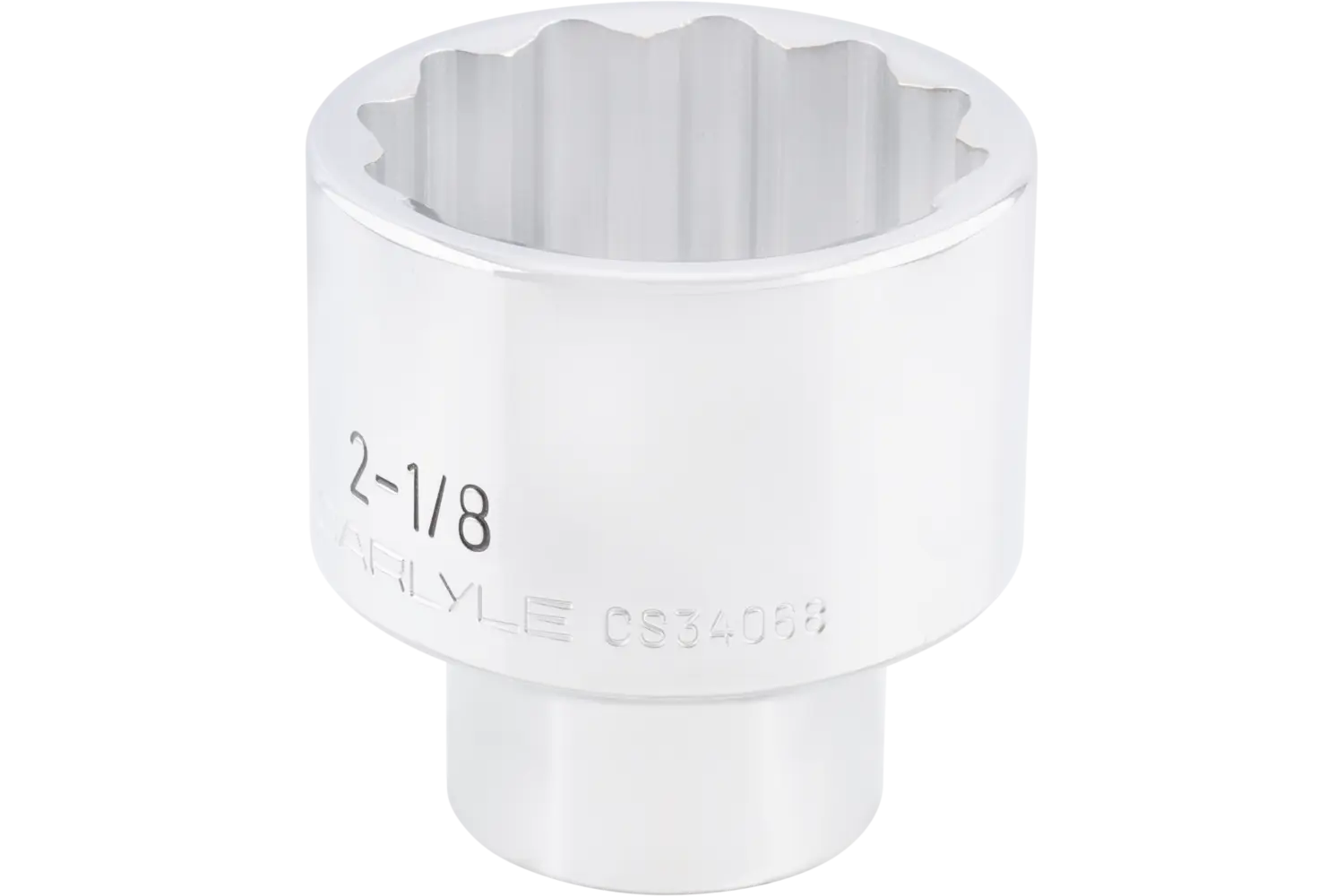 The Carlyle 3/4 in. Drive Standard Depth Chrome Socket is a reliable tool for tackling a wide range of tasks. Forged from chrome vanadium alloy steel, this socket is designed for strength and durability. Its 12-point radius corner design reduces wear and improves grip on fasteners, while the polished chrome finish resists rust and corrosion. Deep-rolled markings make size identification quick and easy. Whether you're a professional or a DIYer, this socket is a dependable addition to your toolbox, ready to handle tough tasks in the shop or garage.