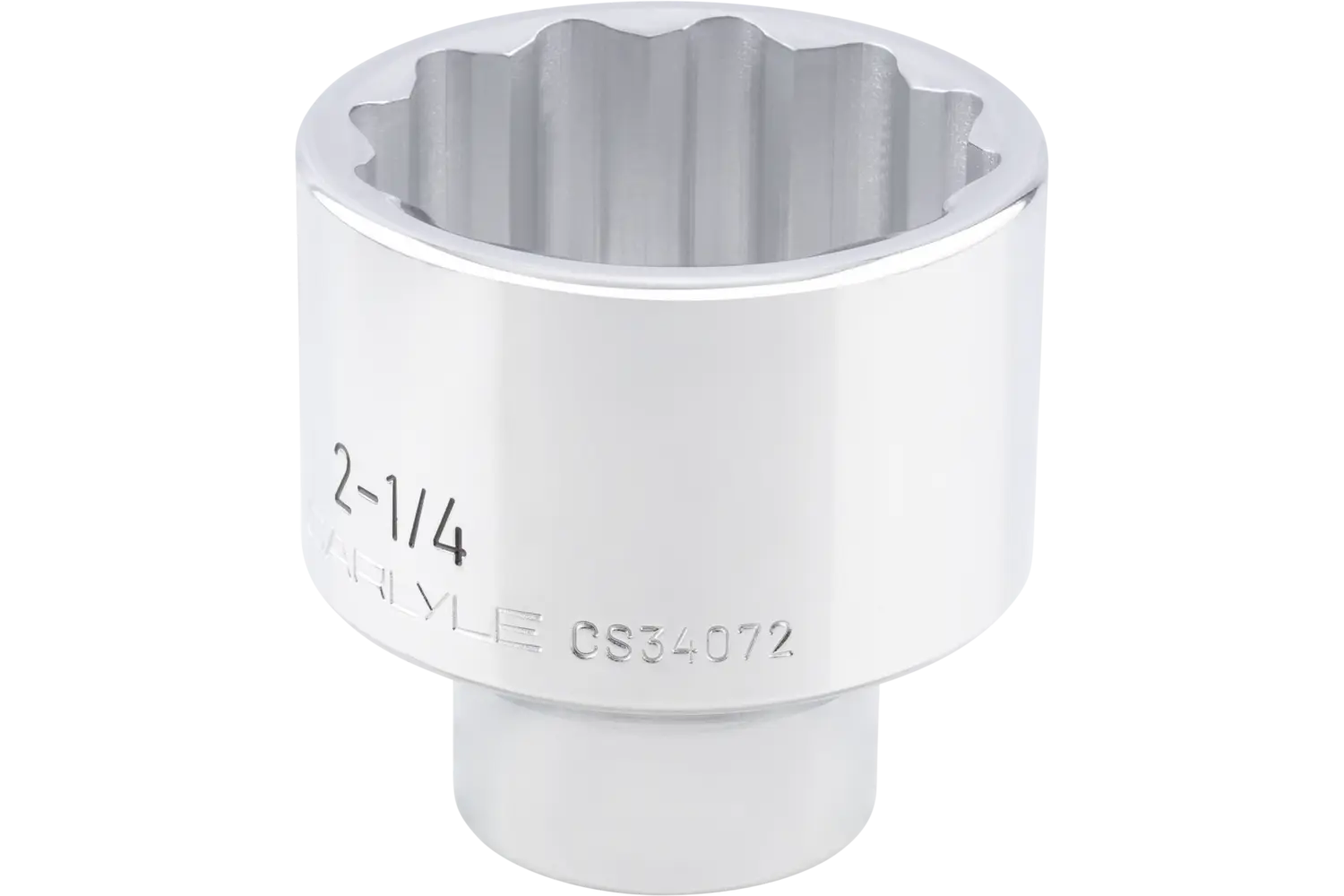 The Carlyle 3/4 in. Drive Standard Depth Chrome Socket is a reliable tool for tackling a wide range of tasks. Forged from chrome vanadium alloy steel, this socket is designed for strength and durability. Its 12-point radius corner design reduces wear and improves grip on fasteners, while the polished chrome finish resists rust and corrosion. Deep-rolled markings make size identification quick and easy. Whether you're a professional or a DIYer, this socket is a dependable addition to your toolbox, ready to handle tough tasks in the shop or garage.