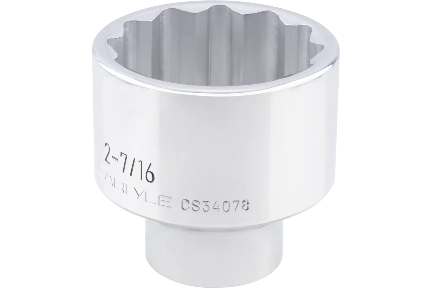 The Carlyle 3/4 in. Drive Standard Depth Chrome Socket is a reliable tool for tackling a wide range of tasks. Forged from chrome vanadium alloy steel, this socket is designed for strength and durability. Its 12-point radius corner design reduces wear and improves grip on fasteners, while the polished chrome finish resists rust and corrosion. Deep-rolled markings make size identification quick and easy. Whether you're a professional or a DIYer, this socket is a dependable addition to your toolbox, ready to handle tough tasks in the shop or garage.
