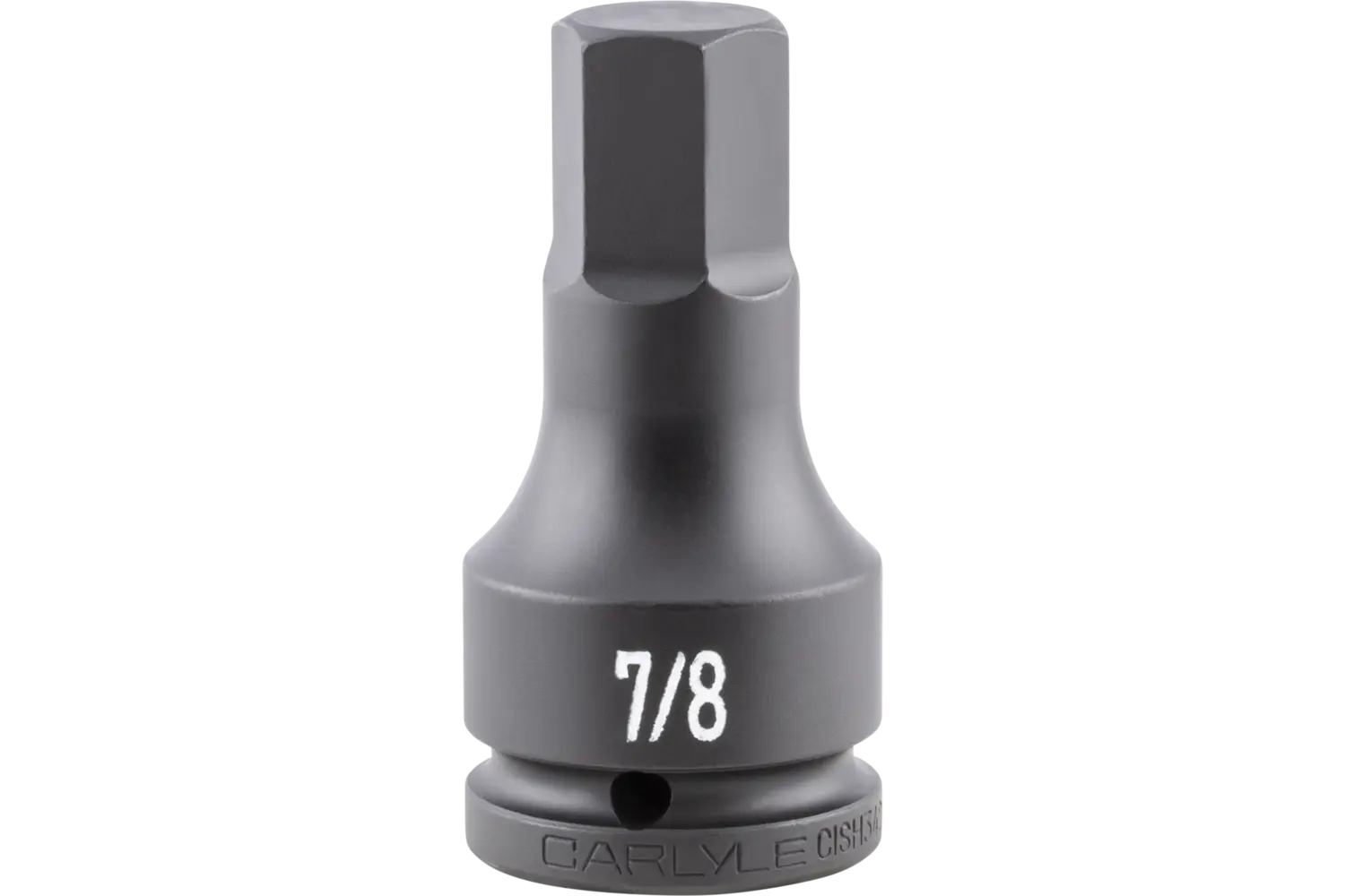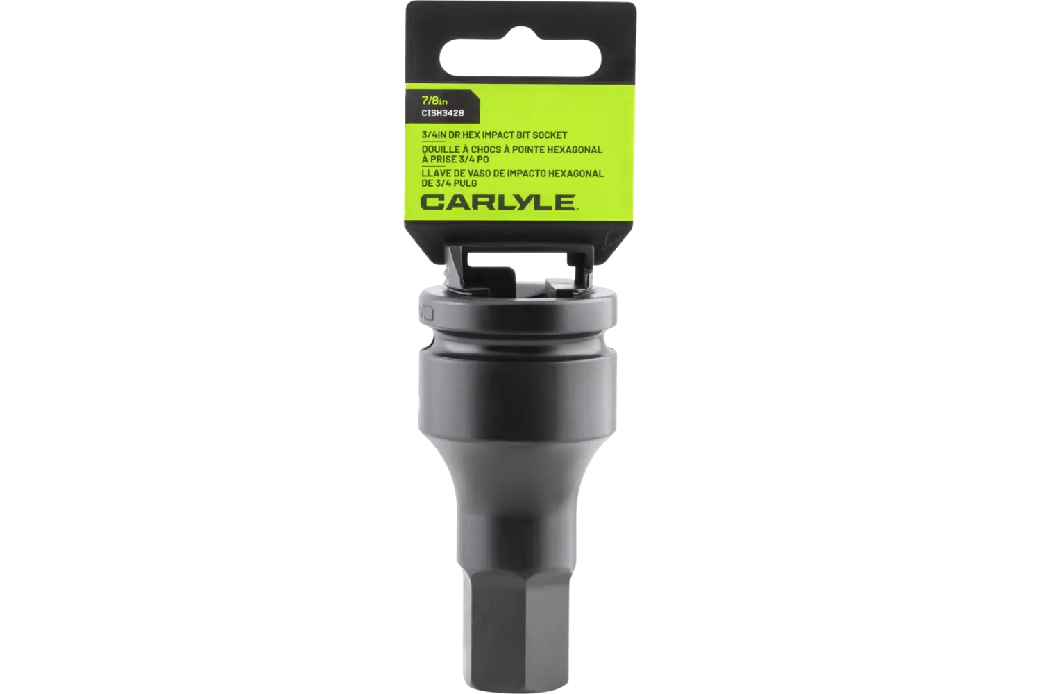 The Carlyle 3/4 in. Drive Hex Bit Impact Socket is a durable tool designed for demanding applications. Forged from chrome molybdenum alloy steel, this socket is built to handle tough jobs with precision. Its radius corner design provides a secure grip on fasteners, helping to reduce wear and rounding. Deep-rolled markings and knurling make size identification quick and easy. With its heat-treated construction, this socket is ready to handle challenging conditions in the shop or garage. A reliable choice for professionals and DIYers alike, this tool is built to perform.