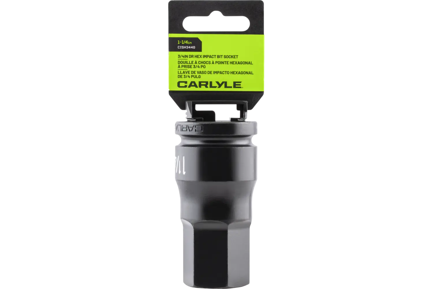 The Carlyle 3/4 in. Drive Hex Bit Impact Socket is a durable tool designed for demanding applications. Forged from chrome molybdenum alloy steel, this socket is built to handle tough jobs with precision. Its radius corner design provides a secure grip on fasteners, helping to reduce wear and rounding. Deep-rolled markings and knurling make size identification quick and easy. With its heat-treated construction, this socket is ready to handle challenging conditions in the shop or garage. A reliable choice for professionals and DIYers alike, this tool is built to perform.