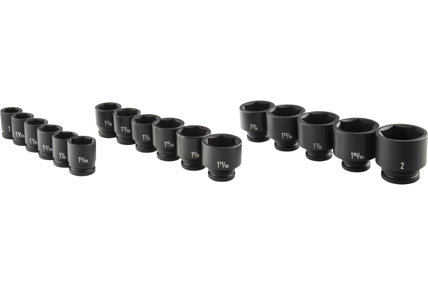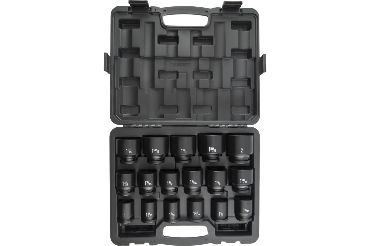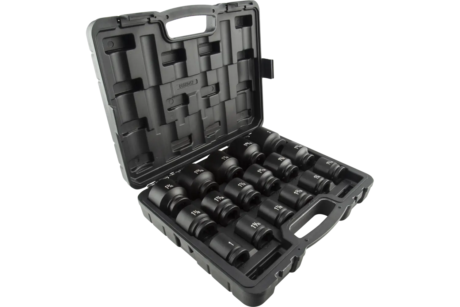 1in, 1-1/16in, 1-1/8in, 1-3/16in, 1-1/4in, 1-5/16in, 1-3/8in, 1-7/16in, 1-1/2in, 1-9/16in, 1-5/8in, 1-11/16in, 1-3;4in, 1-13/16in, 1-7/8in, 1-15/16in, 2in Magnesium Phosphate 6 Point Standard 17 PC Blow Mold Case