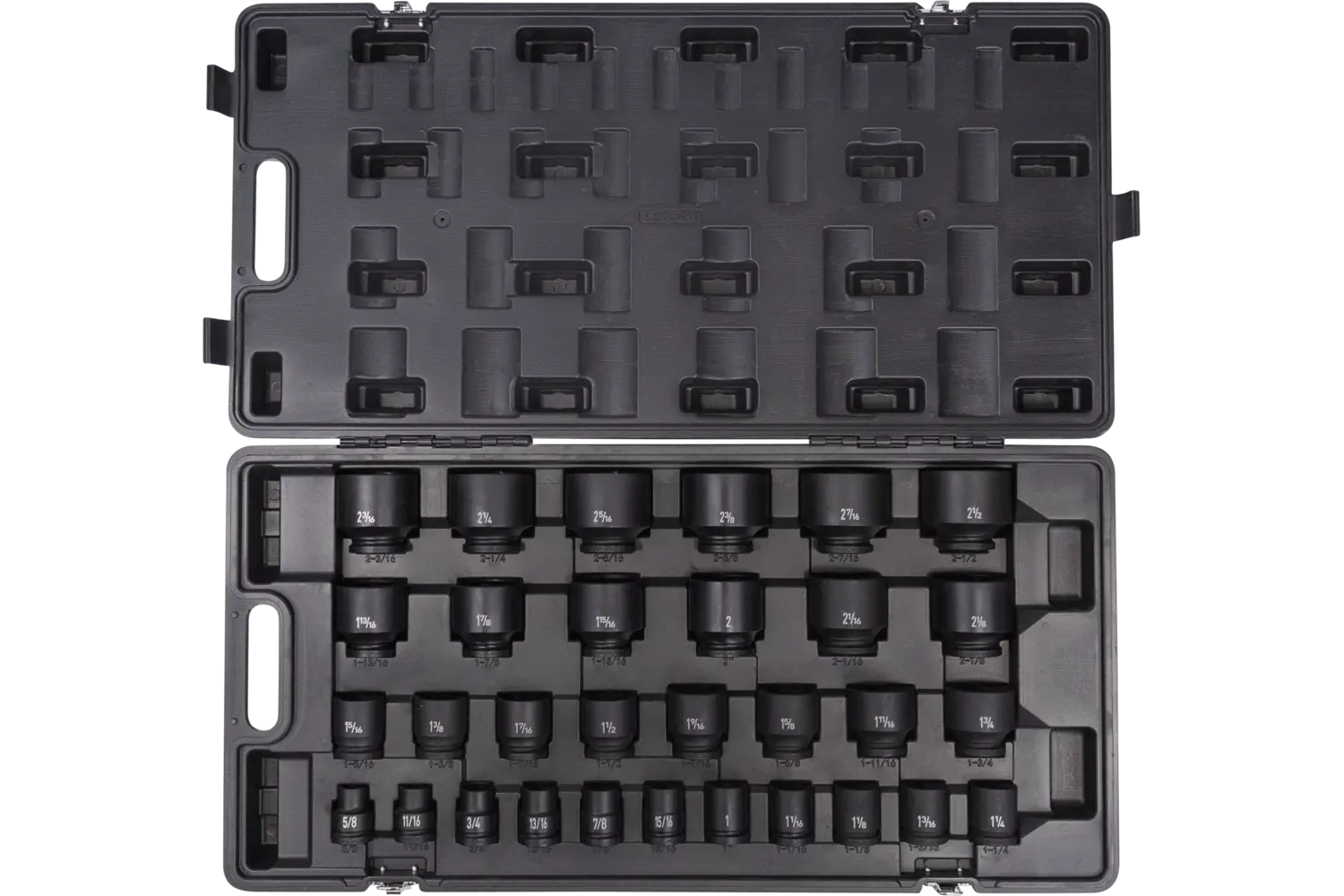 | 5/8in, 11/16in, 3/4in, 13/16in, 7/8in, 15/16in, 1in, 1-1/16in, 1-1/8in, 1-3/16in, 1-1/4in, 1-5/16in, 1-3/8in, 1-7/16in, 1-1/2in, 1-9/16in, 1-5/8in, 1-11/16in, 1-3;4in, 1-13/16in, 1-7/8in, 1-15/16in, 2in, 2-1/16in, 2-1/8in, 2-3/16in, 2-1/4in, 2-5/16in, 2-3/8in, 2-7/16in, 2-1/2in | Magnesium Phosphate | 6 Point | Standard | 31 PC | Blow Mold Case |
