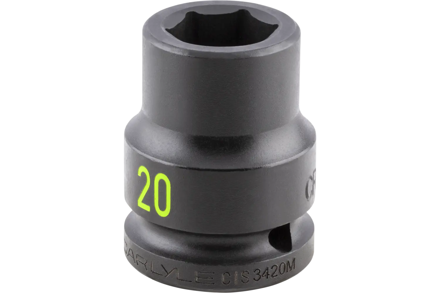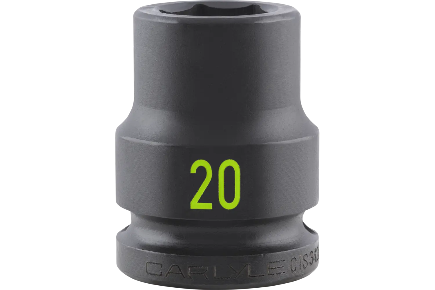 The Carlyle 3/4 in. Drive Standard Depth Impact Socket is a durable tool designed for demanding tasks. Forged from chrome molybdenum alloy steel, this socket is built to handle tough jobs with ease. The radius corner design provides a secure grip on fasteners, reducing wear and rounding, while chamfered openings allow for quick and precise placement. With deep-rolled markings for easy identification, this socket is a practical addition to any toolkit for automotive and industrial applications.