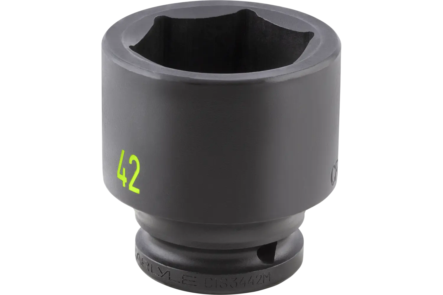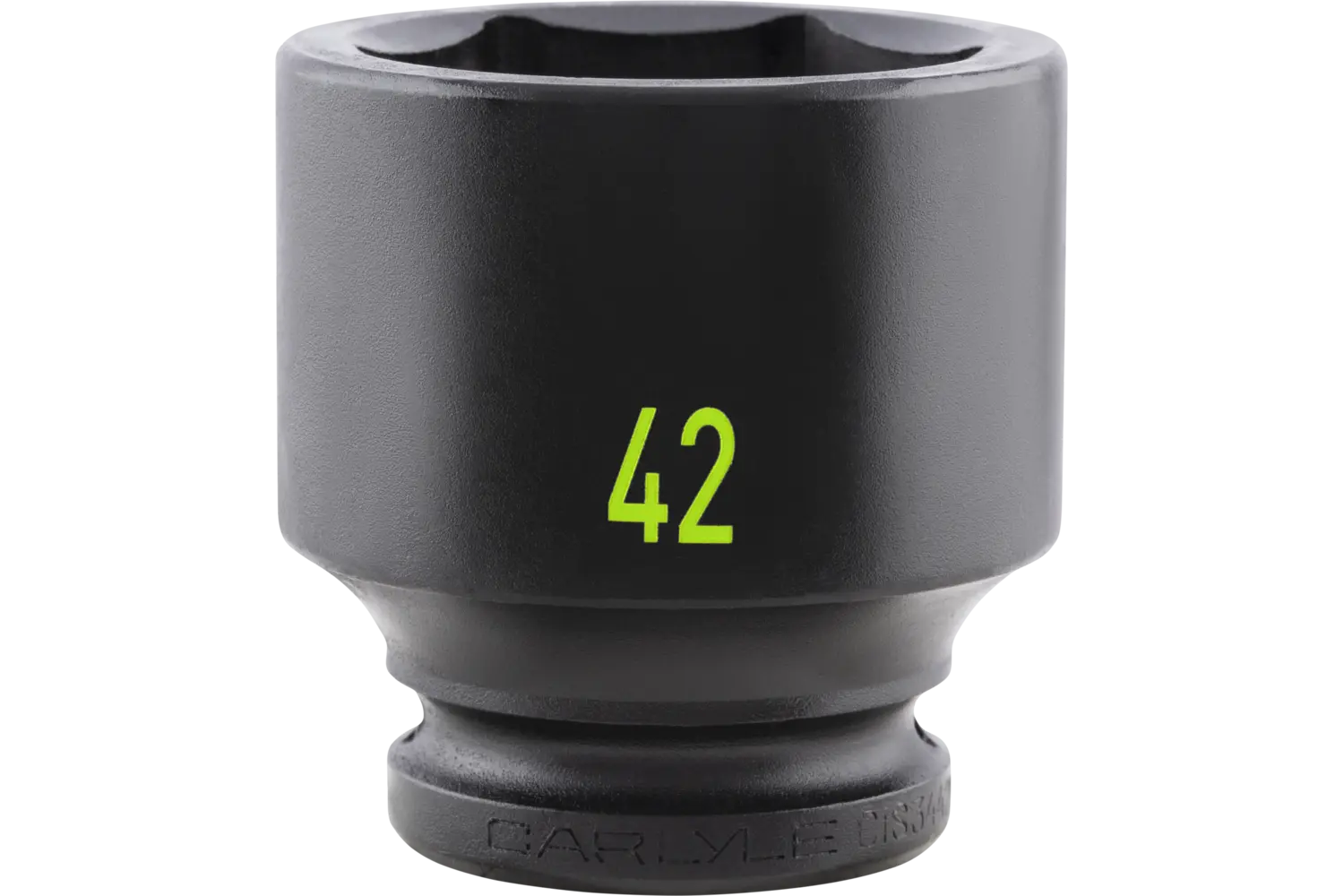 The Carlyle 3/4 in. Drive Standard Depth Impact Socket is a durable tool designed for demanding tasks. Forged from chrome molybdenum alloy steel, this socket is built to handle tough jobs with ease. The radius corner design provides a secure grip on fasteners, reducing wear and rounding, while chamfered openings allow for quick and precise placement. With deep-rolled markings for easy identification, this socket is a practical addition to any toolkit for automotive and industrial applications.