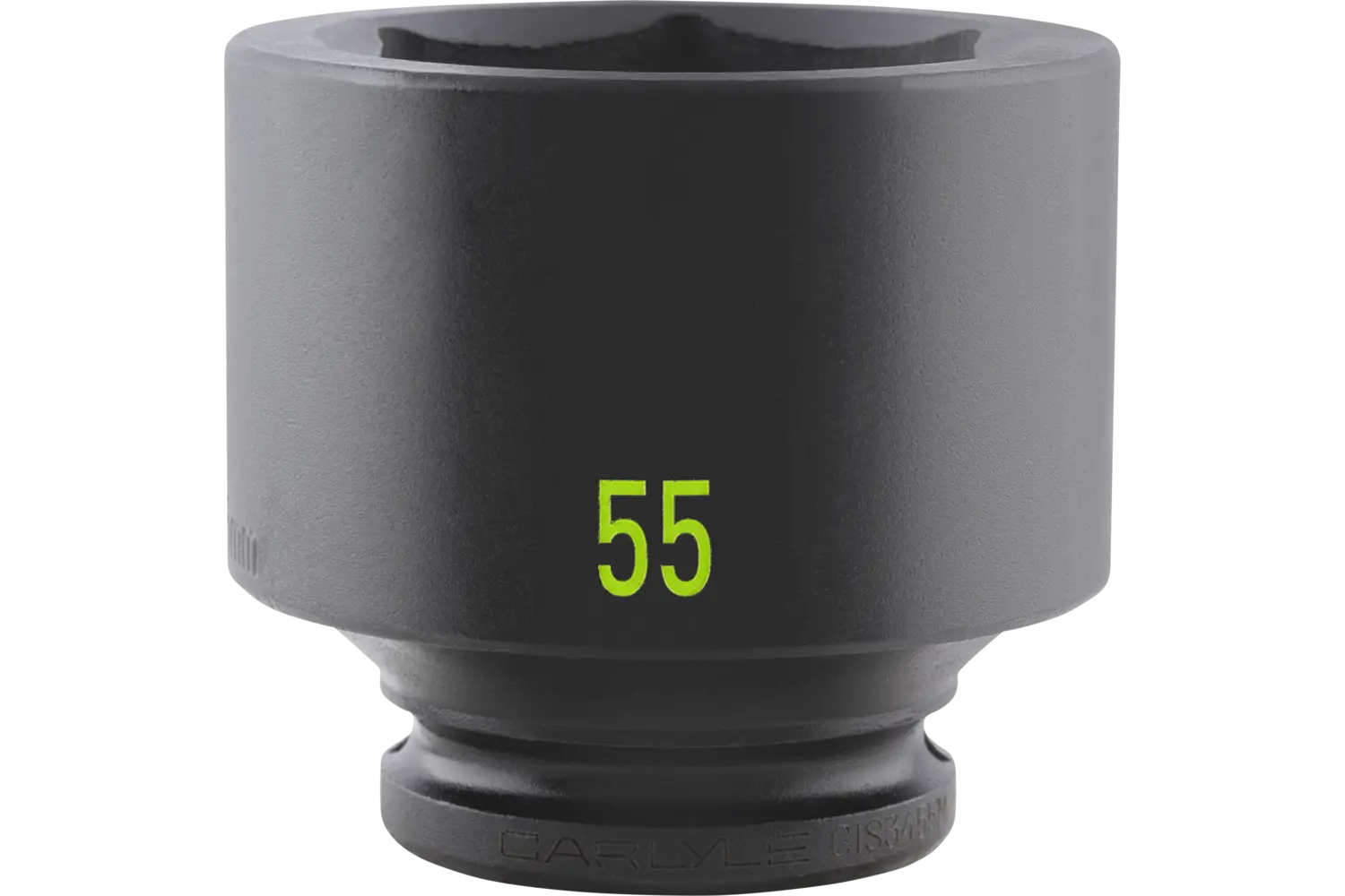 The Carlyle 3/4 in. Drive Standard Depth Impact Socket is a durable tool designed for demanding tasks. Forged from chrome molybdenum alloy steel, this socket is built to handle tough jobs with ease. The radius corner design provides a secure grip on fasteners, reducing wear and rounding, while chamfered openings allow for quick and precise placement. With deep-rolled markings for easy identification, this socket is a practical addition to any toolkit for automotive and industrial applications.