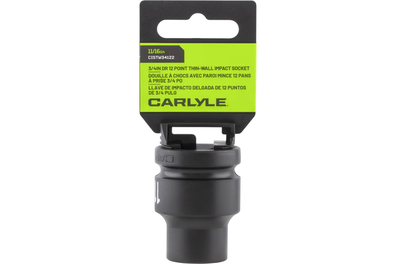 The Carlyle 3/4 in. Drive Thin-Wall Standard Depth Impact Socket is a versatile tool for automotive professionals and DIYers. Crafted from chrome molybdenum alloy steel, this socket is built to handle tough jobs with precision. Its radius corner design improves torque and reduces wear, while the chamfered openings make placement quick and easy. The thin-wall construction allows access to tight spaces, making it a practical choice for a variety of applications. Whether you're in the shop or the garage, this impact socket is a reliable tool for demanding tasks.