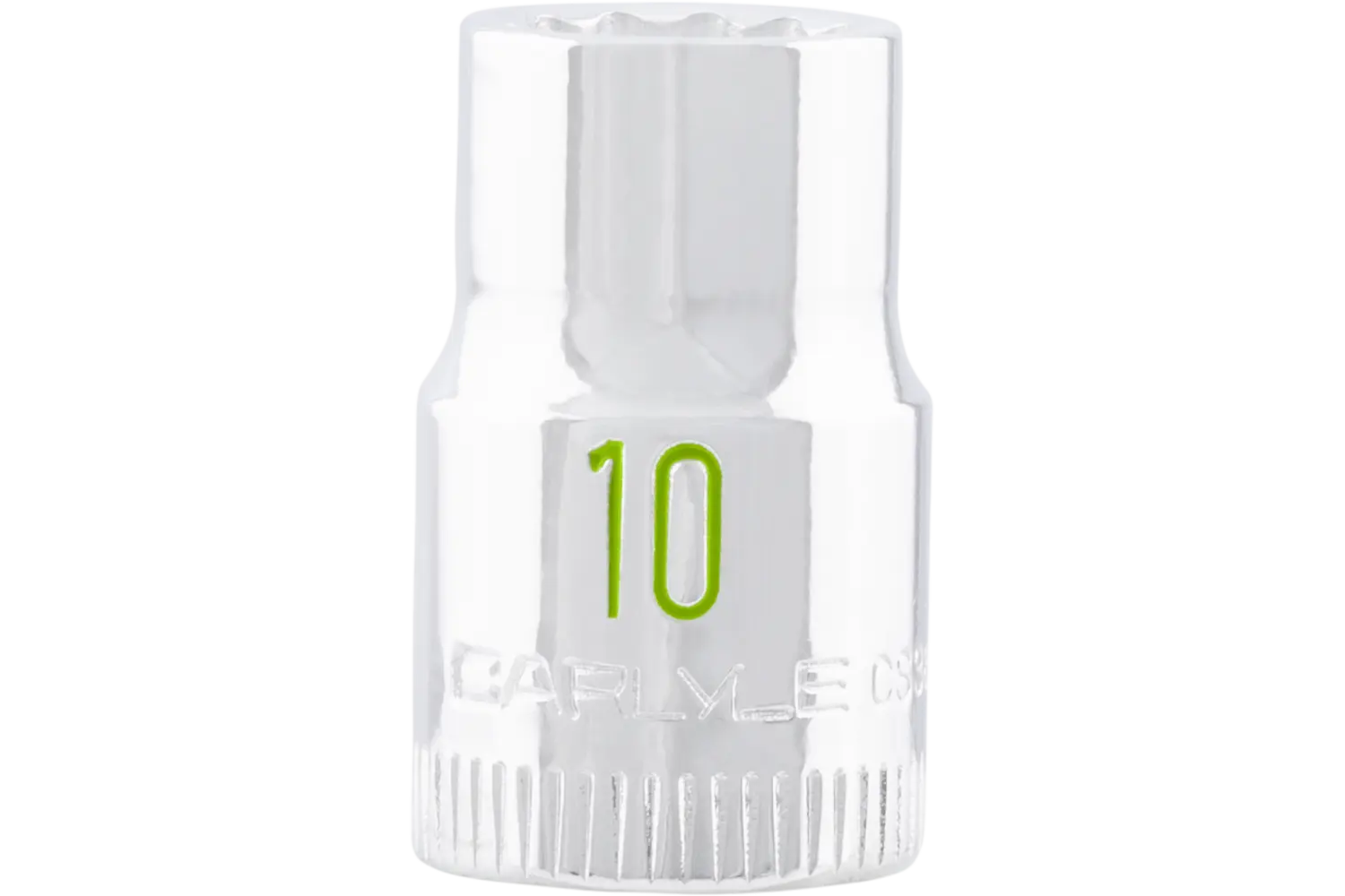 The Carlyle 3/8 in. Drive Chrome Socket - Metric is a versatile tool for automotive tasks. Available in 6-point or 12-point designs, it reduces wear on fasteners and enhances grip. The polished chrome finish resists rust, providing durability. This socket is a reliable choice for both professionals and DIY enthusiasts.