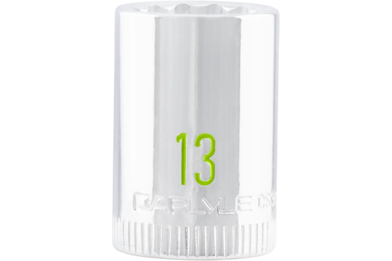 The Carlyle 3/8 in. Drive Chrome Socket - Metric is a versatile tool for automotive tasks. Available in 6-point or 12-point designs, it reduces wear on fasteners and enhances grip. The polished chrome finish resists rust, providing durability. This socket is a reliable choice for both professionals and DIY enthusiasts.