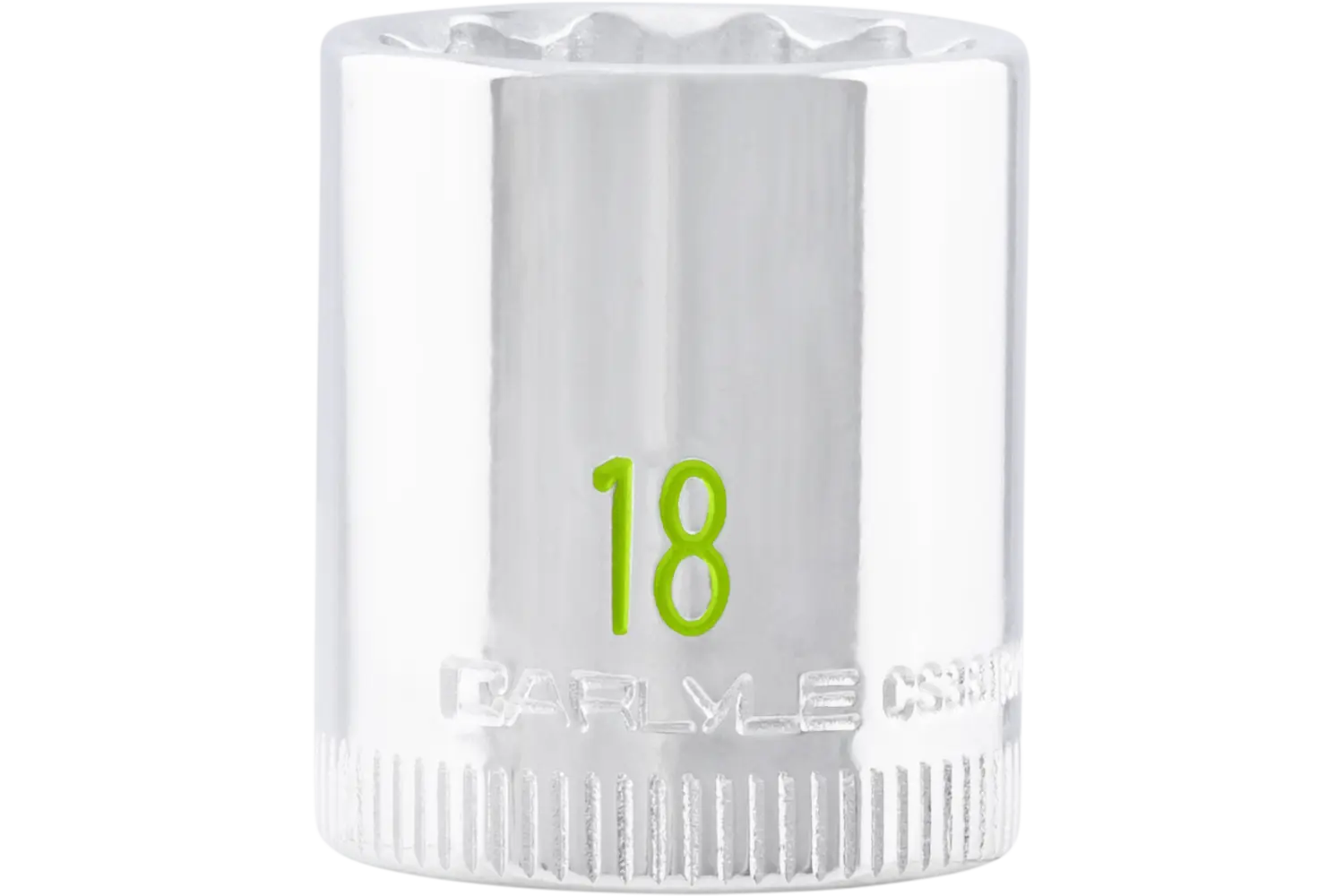 The Carlyle 3/8 in. Drive Chrome Socket - Metric is a versatile tool for automotive tasks. Available in 6-point or 12-point designs, it reduces wear on fasteners and enhances grip. The polished chrome finish resists rust, providing durability. This socket is a reliable choice for both professionals and DIY enthusiasts.