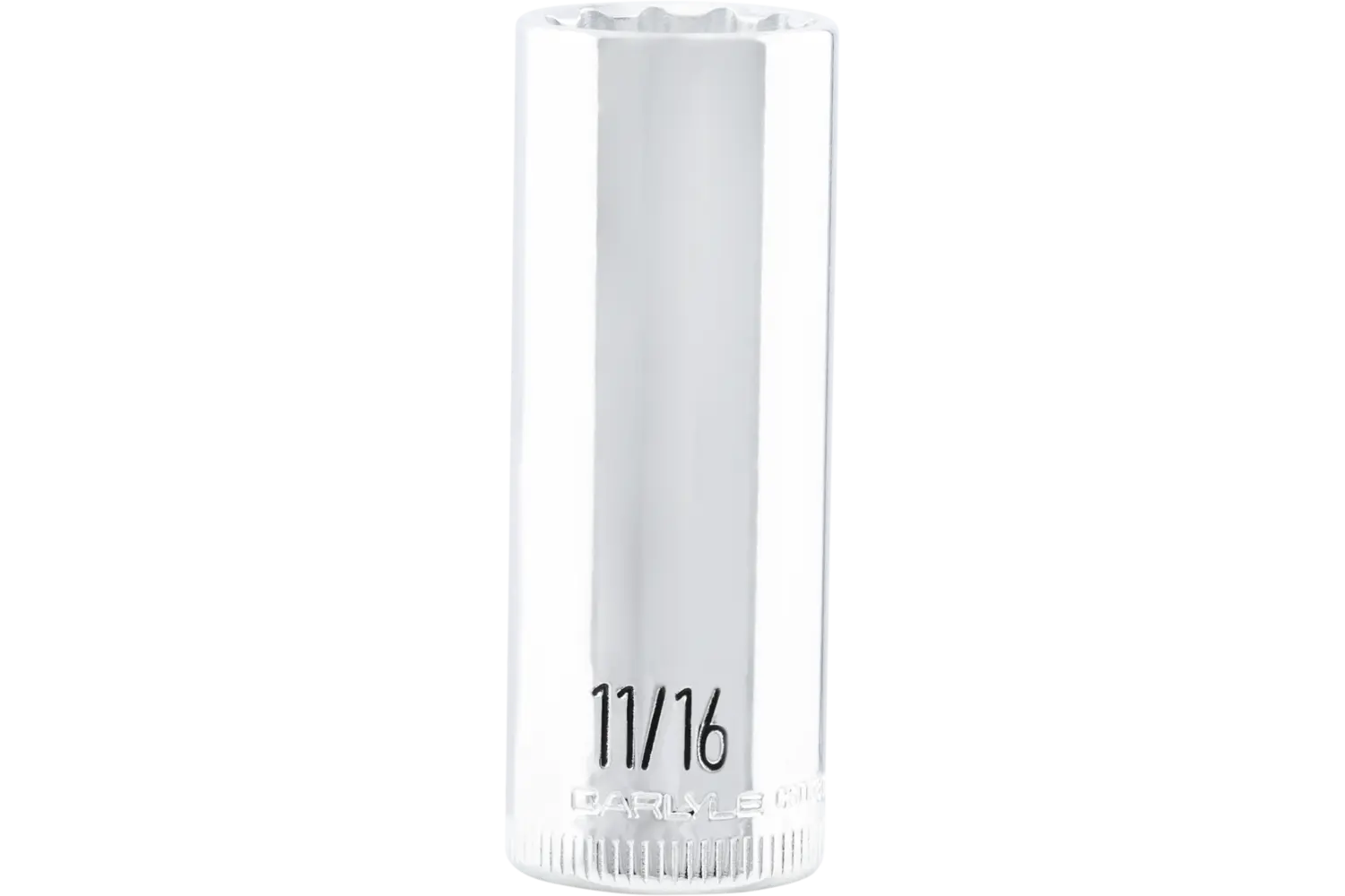 The Carlyle 3/8 in. Drive Chrome Sockets - SAE are designed for durability and precision. Available in 6-point, 8-point, or 12-point designs, they reduce wear on fasteners and enhance grip. Made from chrome molybdenum steel, these sockets resist rust and provide reliable performance for various tasks.