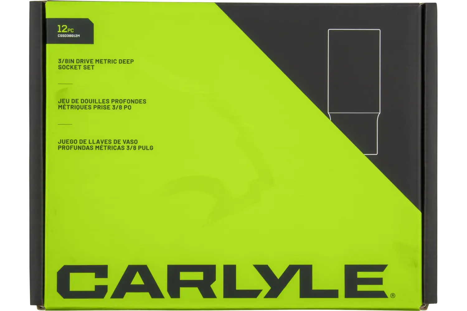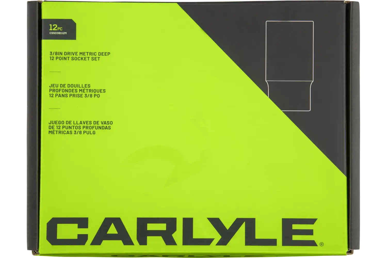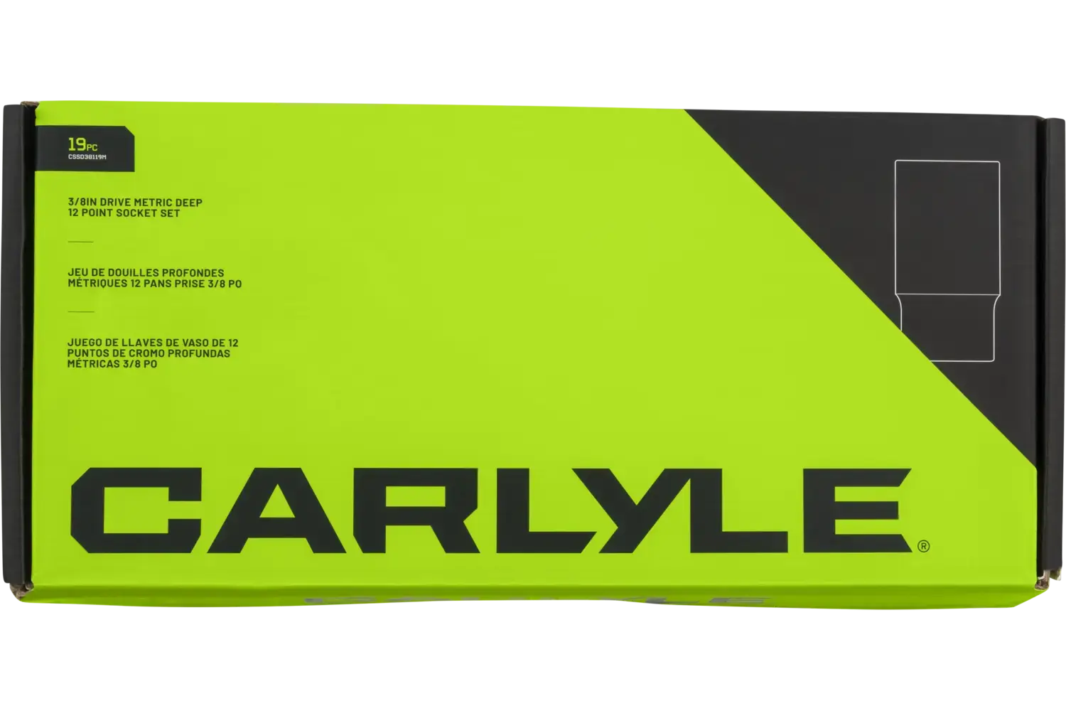 Built to deliver reliability under extreme working conditions, the Carlyle 3/8 in. Drive Deep Chrome Socket Set - Metric is made for pros and DIYers alike. Each socket features either a 6-point or 12-point design, ensuring superior fastener engagement and torque distribution. Its highly polished chrome-plated finish resists rust and keeps the sockets looking great job after job. Available in sets with 12 or 19 pieces, this socket set comes with a socket rail for easy organization and access. Engineered for heavy-duty use, this set is perfect for tackling complex tasks in the shop or on the road.