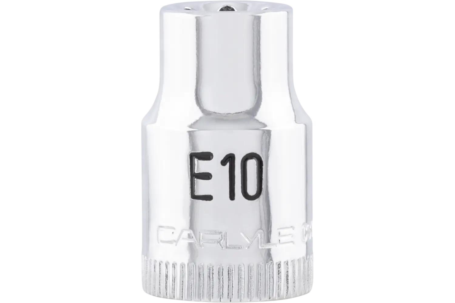 The Carlyle 3/8 in. Drive External Torx/Star Chrome Sockets are built for durability and precision. Made with S2 bit material and a zinc phosphate finish, they provide strength and reliability. The polished chrome-plated CR-V socket resists rust, while stamped markings make identification easy. These sockets are a practical choice for demanding applications.