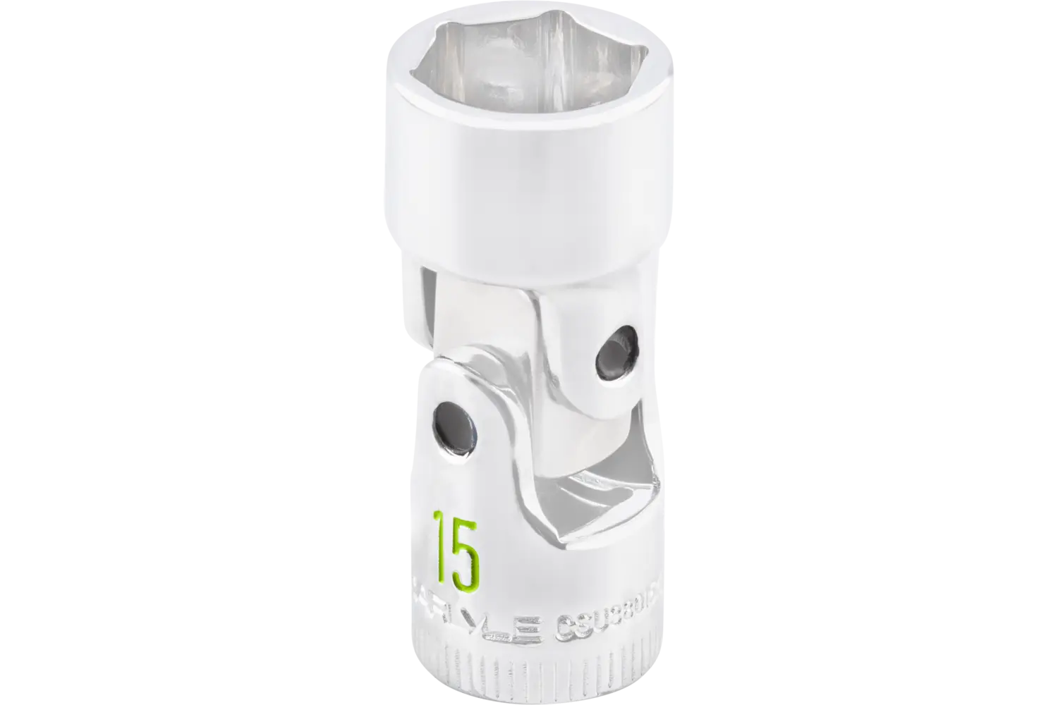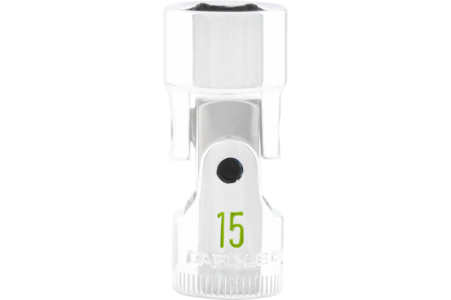 The Carlyle 3/8 in. Drive Flex Impact Socket - Metric is a versatile tool for tackling fasteners in hard-to-reach areas. Equipped with a universal joint for enhanced flexibility, it maneuvers easily into tight spaces. The 6-point or 12-point design reduces bolt and nut wear while improving grip. The polished chrome-plated finish resists rust, providing durability and long-lasting performance for demanding tasks.