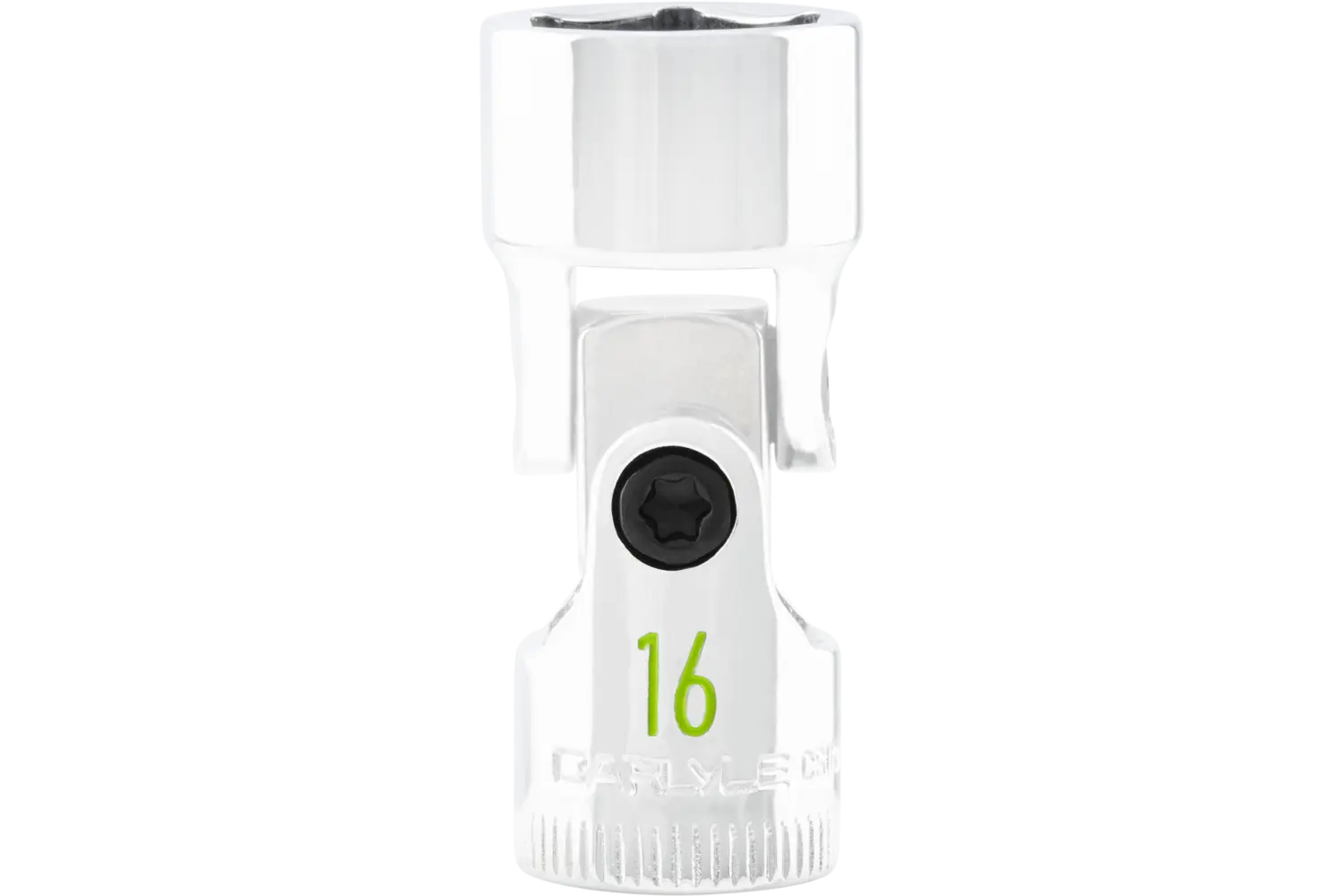 The Carlyle 3/8 in. Drive Flex Impact Socket - Metric is a versatile tool for tackling fasteners in hard-to-reach areas. Equipped with a universal joint for enhanced flexibility, it maneuvers easily into tight spaces. The 6-point or 12-point design reduces bolt and nut wear while improving grip. The polished chrome-plated finish resists rust, providing durability and long-lasting performance for demanding tasks.