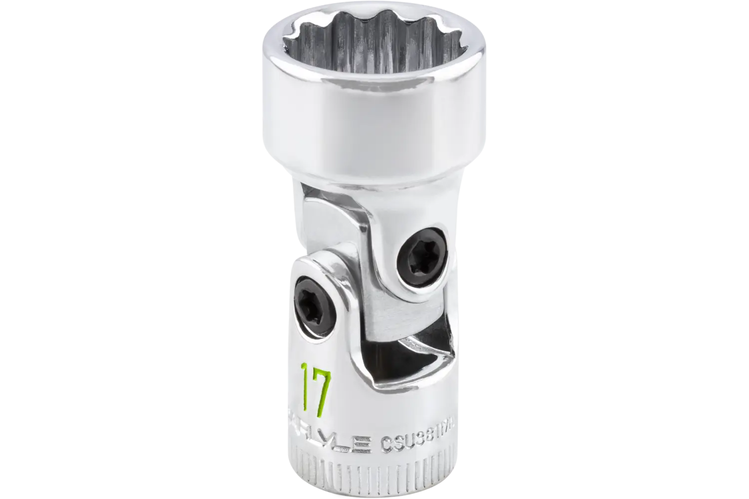 The Carlyle 3/8 in. Drive Flex Impact Socket - Metric is a versatile tool for tackling fasteners in hard-to-reach areas. Equipped with a universal joint for enhanced flexibility, it maneuvers easily into tight spaces. The 6-point or 12-point design reduces bolt and nut wear while improving grip. The polished chrome-plated finish resists rust, providing durability and long-lasting performance for demanding tasks.