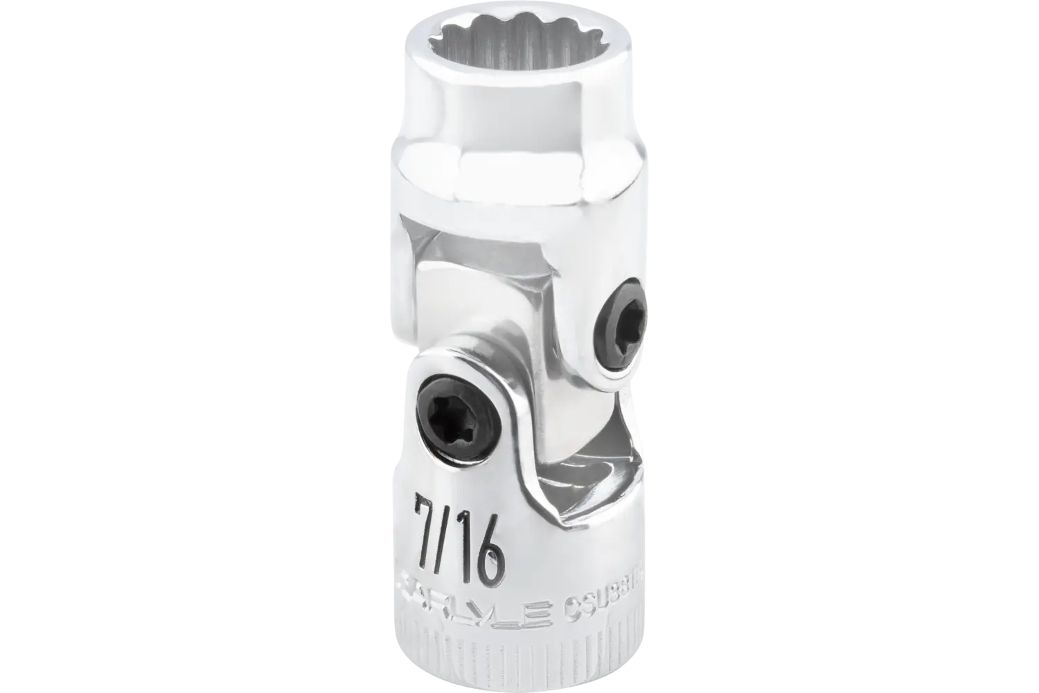 The Carlyle 3/8 in. Drive Flex Impact Socket - SAE is engineered for versatility and precision. Its universal joint allows for easy access to tight spaces, while the 6-point or 12-point design minimizes fastener wear and enhances grip. The polished chrome finish resists rust and corrosion, making it a durable and reliable tool for a wide range of automotive applications.