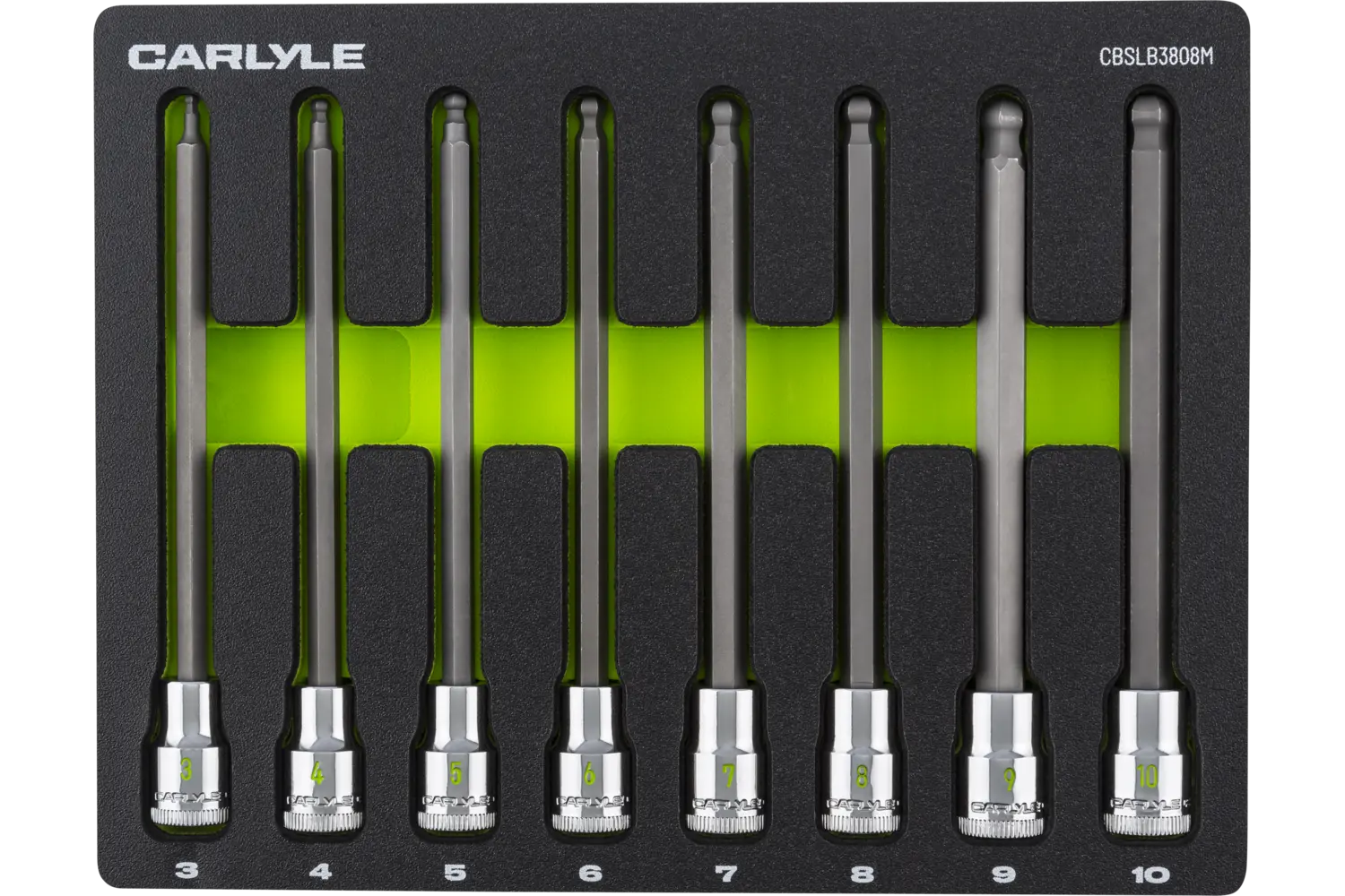 | 3mm, 4mm, 5mm, 6mm, 7mm, 8mm, 9mm, 10mm | Chrome | Hex | Long Ball-End | 8 PC | EVA Foam |