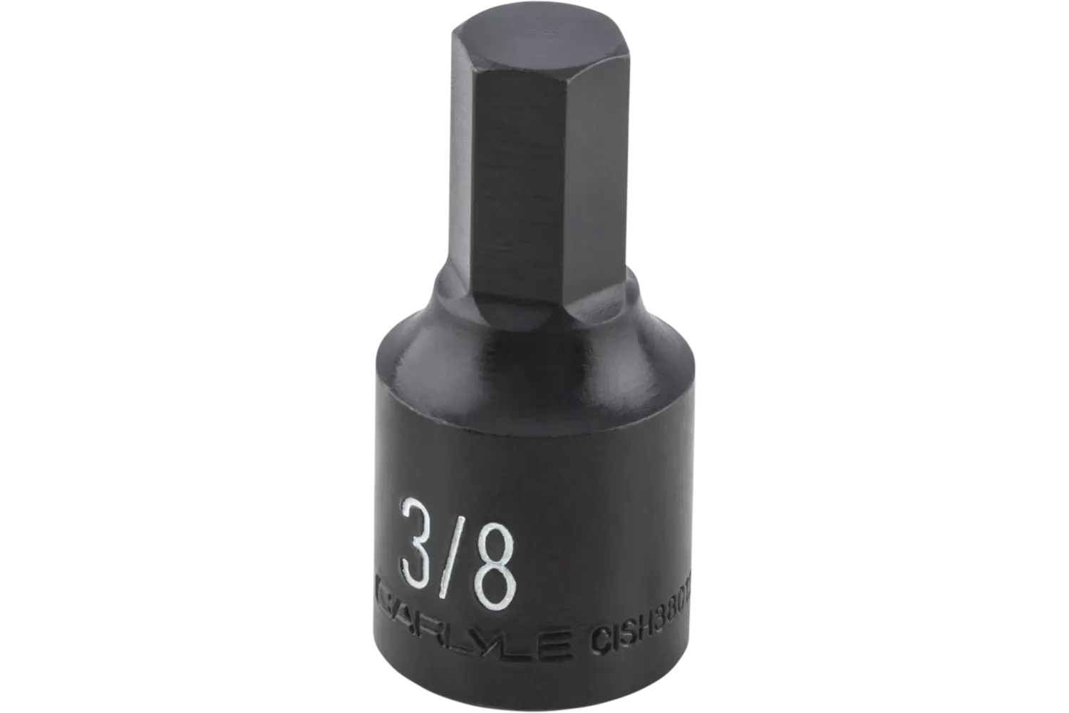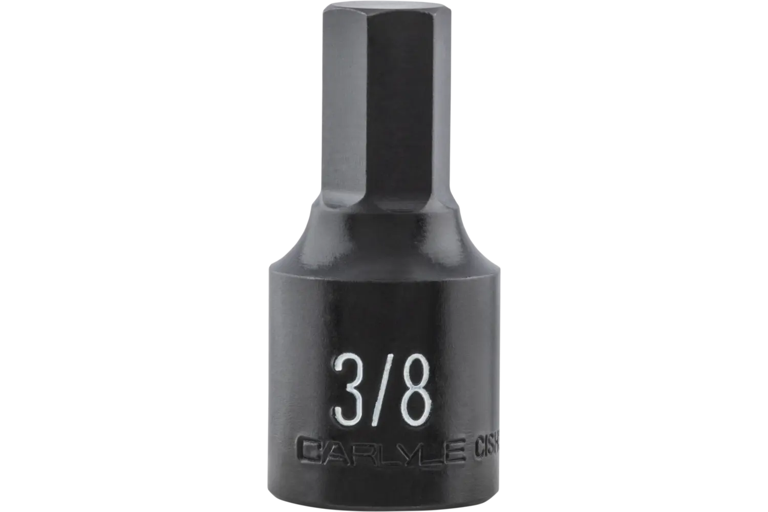 The Carlyle 3/8 in. Drive Hex Bit Impact Sockets are built for durability and precision. Featuring hex tips for a secure fit, they are made with S2 bit material and a zinc phosphate finish for strength. The polished chrome-plated CR-V socket resists rust, while stamped markings make identification easy. These sockets are a dependable choice for tough tasks.