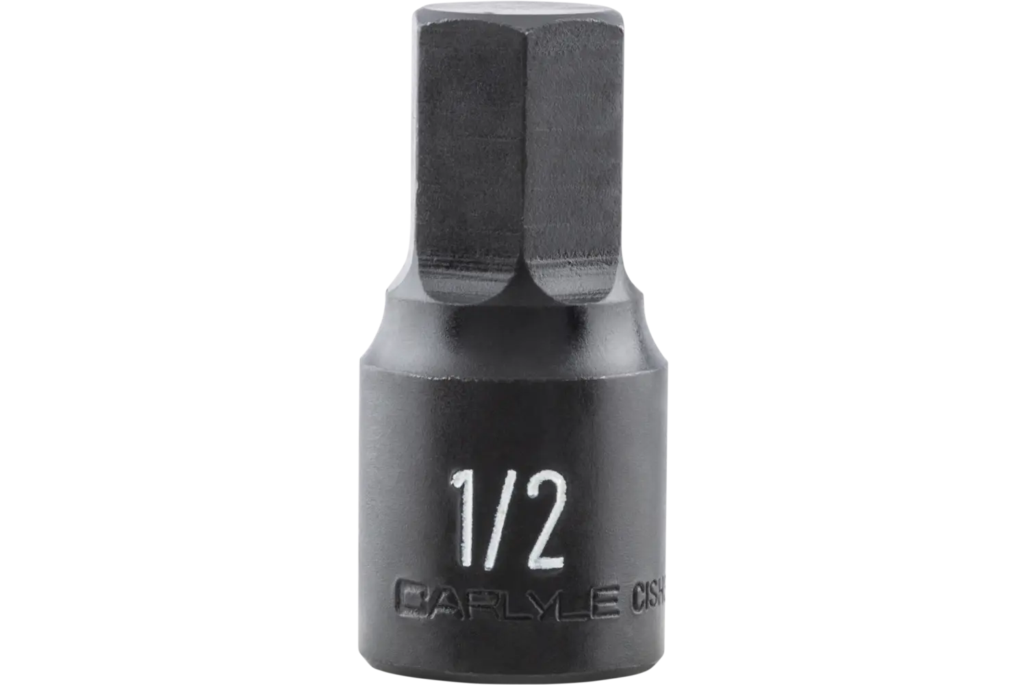 The Carlyle 3/8 in. Drive Hex Bit Impact Sockets are built for durability and precision. Featuring hex tips for a secure fit, they are made with S2 bit material and a zinc phosphate finish for strength. The polished chrome-plated CR-V socket resists rust, while stamped markings make identification easy. These sockets are a dependable choice for tough tasks.
