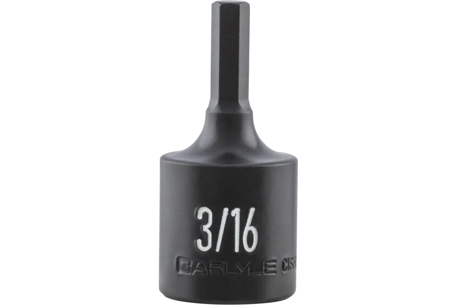 The Carlyle 3/8 in. Drive Hex Bit Impact Sockets are built for durability and precision. Featuring hex tips for a secure fit, they are made with S2 bit material and a zinc phosphate finish for strength. The polished chrome-plated CR-V socket resists rust, while stamped markings make identification easy. These sockets are a dependable choice for tough tasks.