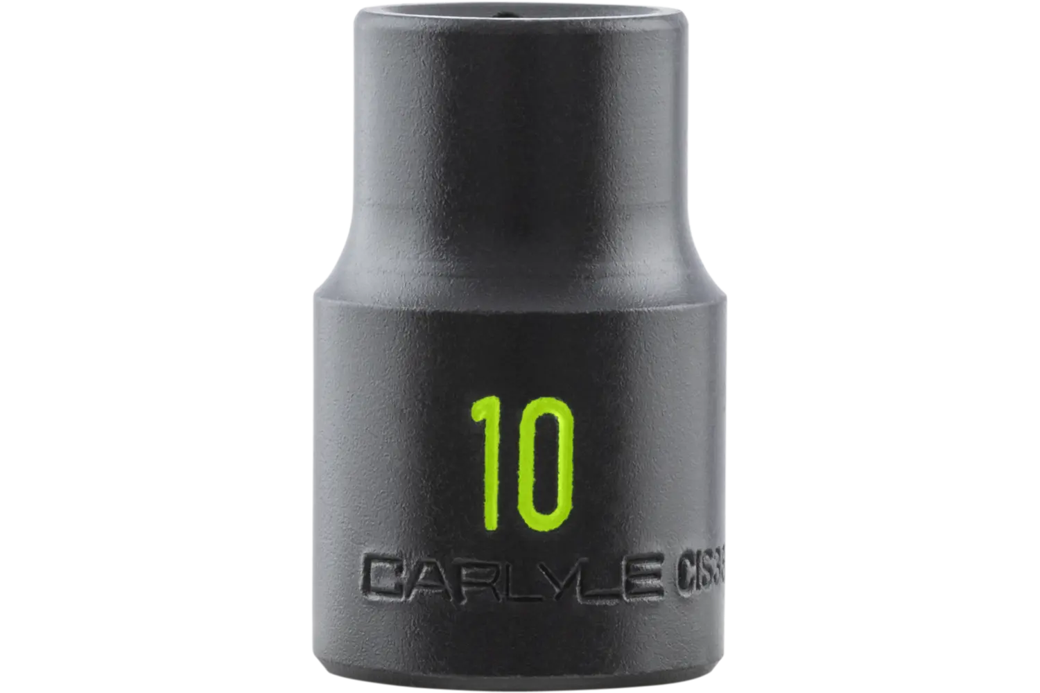 The Carlyle 3/8 in. Drive Impact Sockets are designed for durability and precision. Available in various depths and configurations, they feature a radius-cornered design to reduce wear and enhance grip. Made with CR-V material and a polished chrome finish, these sockets resist rust and provide reliable performance for demanding tasks.