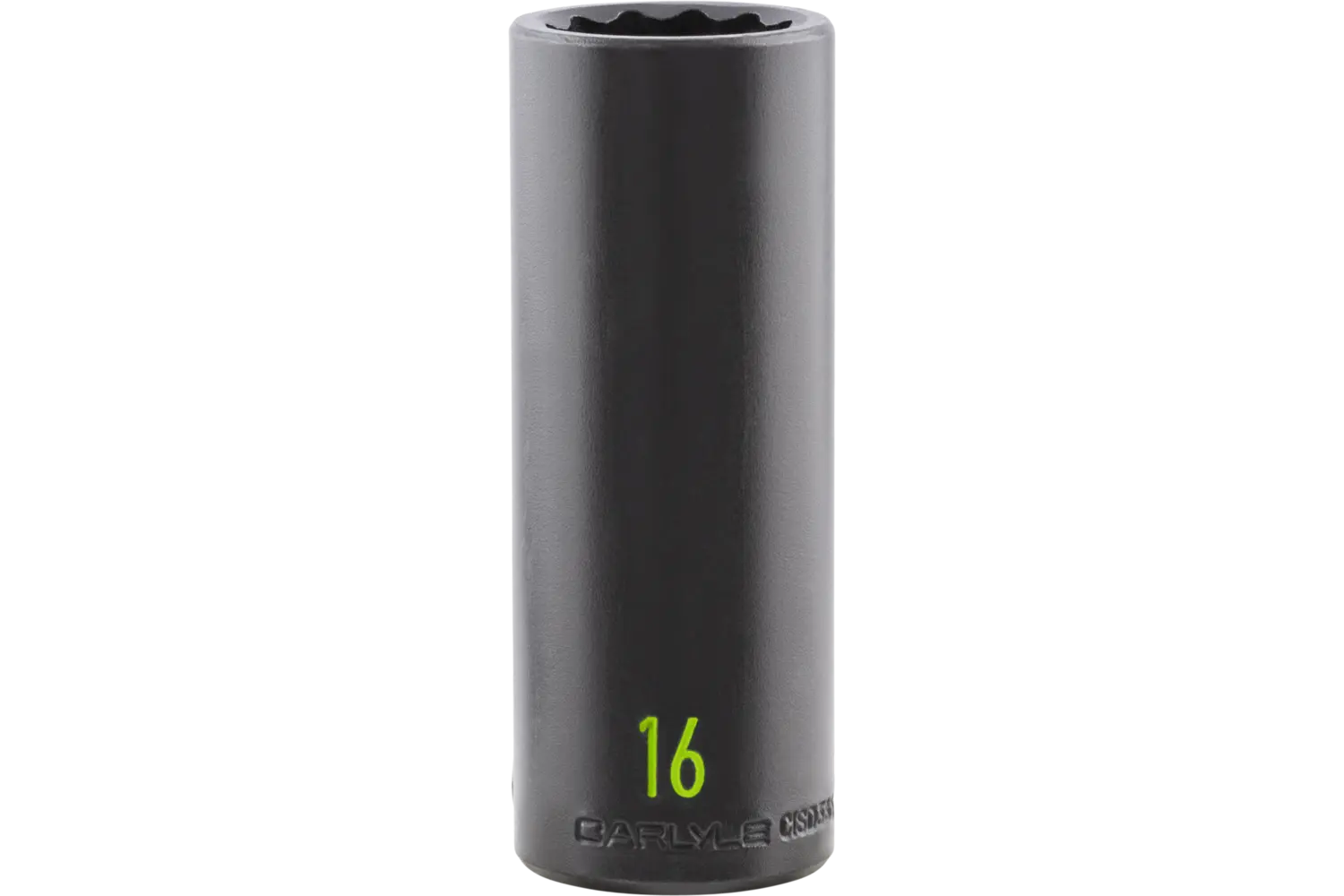 The Carlyle 3/8 in. Drive Impact Sockets are designed for durability and precision. Available in various depths and configurations, they feature a radius-cornered design to reduce wear and enhance grip. Made with CR-V material and a polished chrome finish, these sockets resist rust and provide reliable performance for demanding tasks.