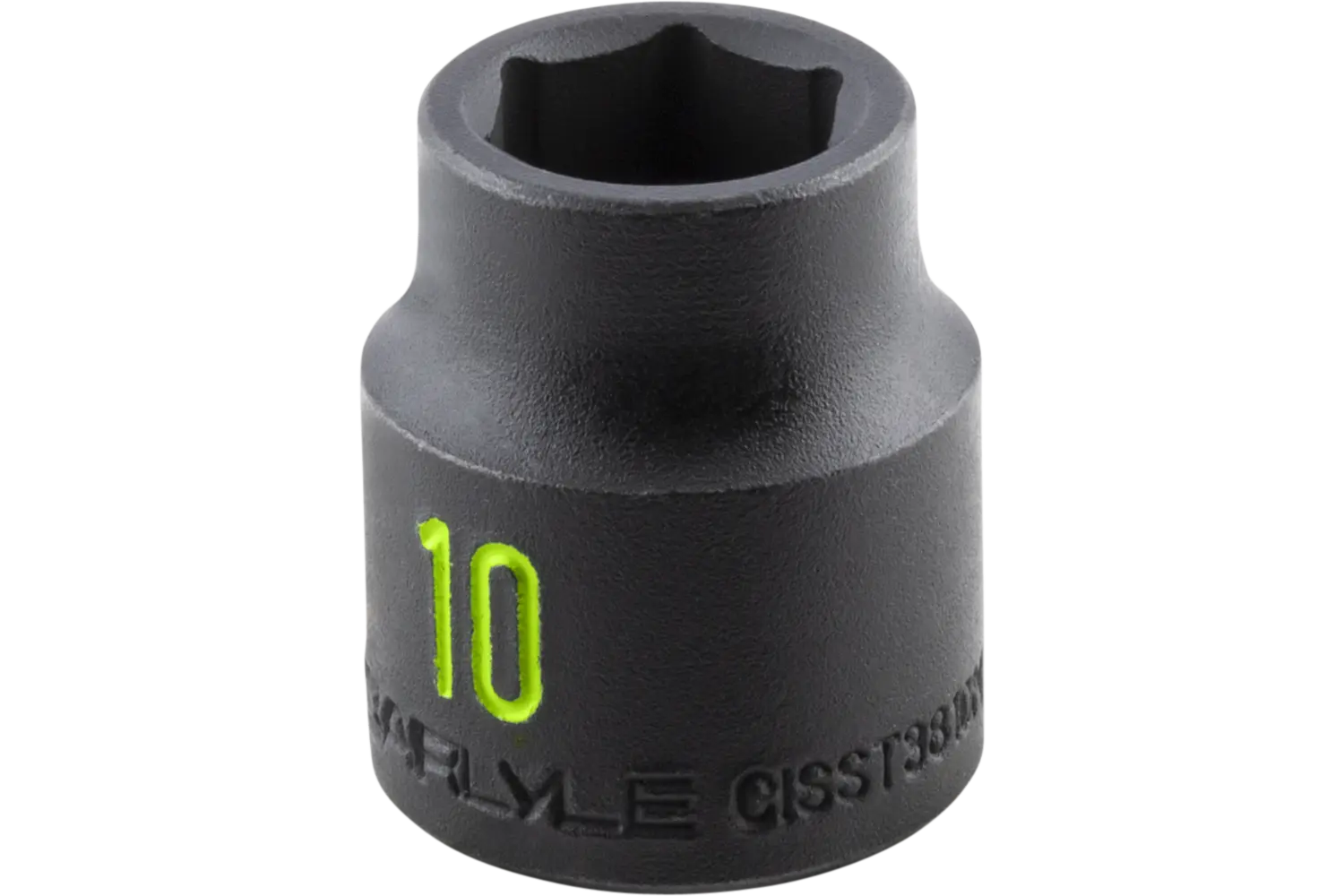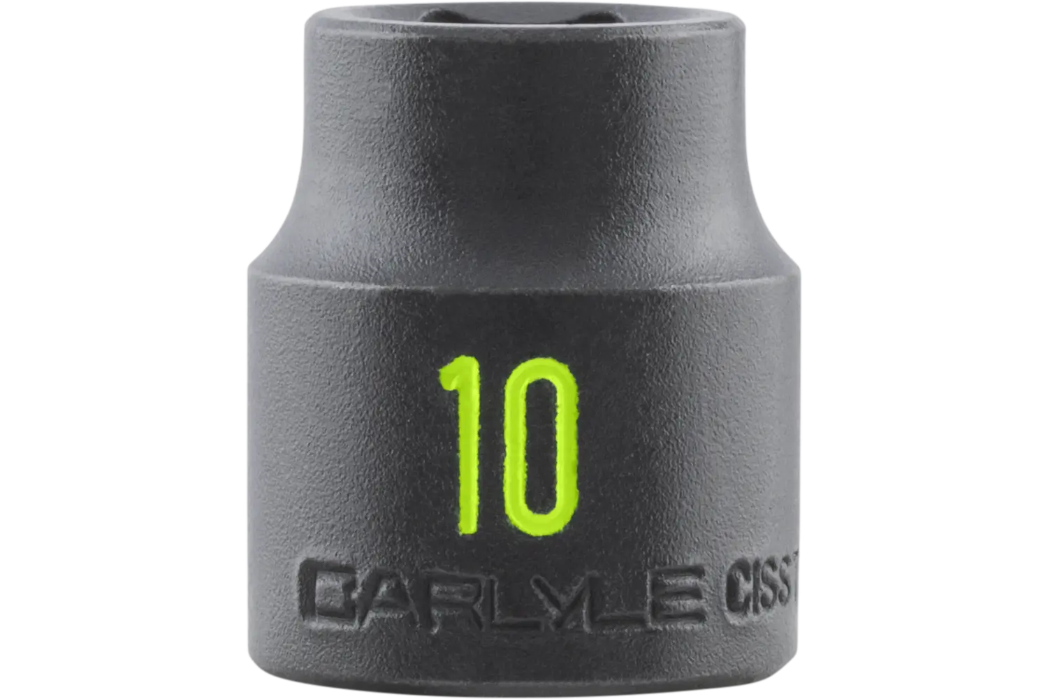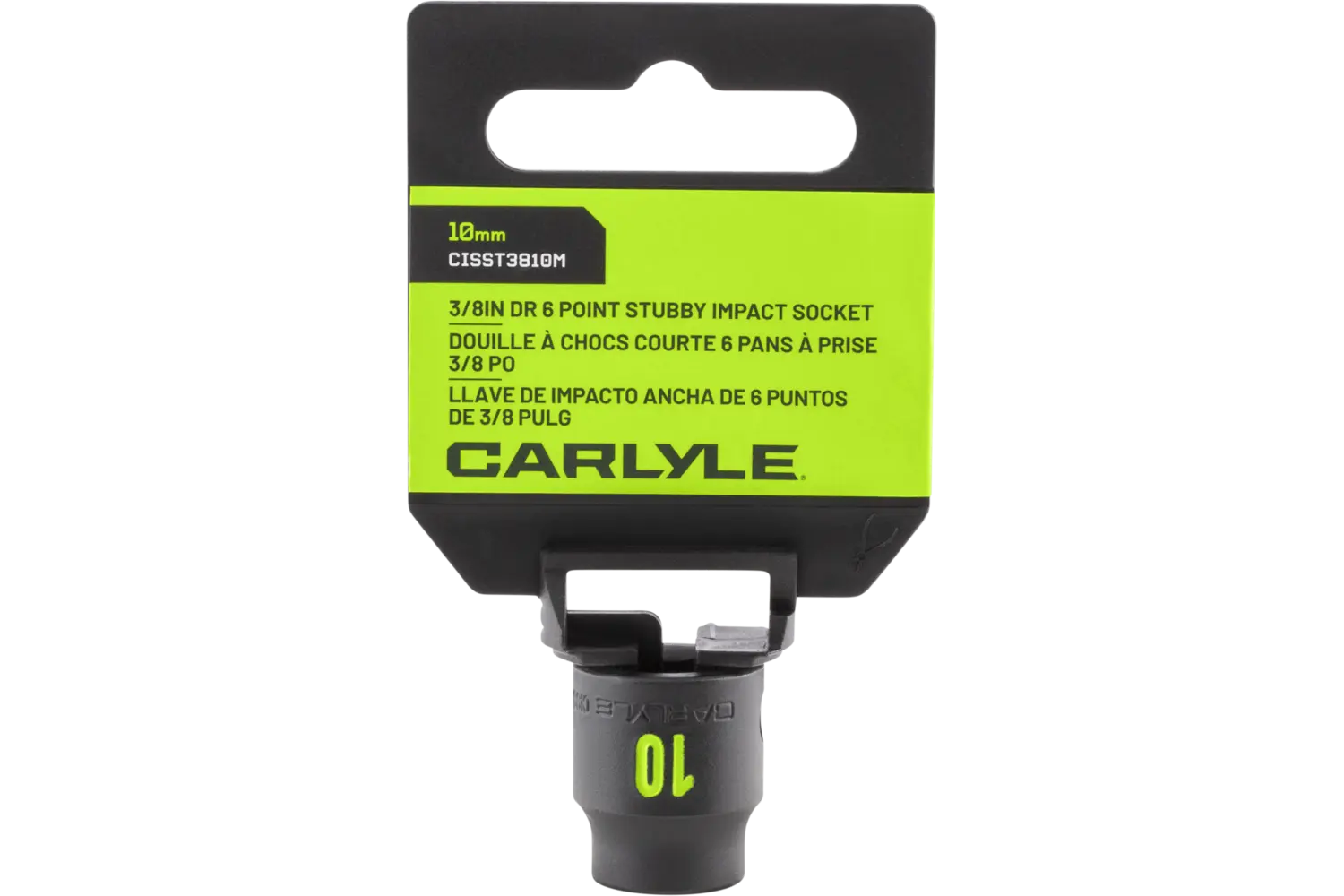 The Carlyle 3/8 in. Drive Impact Sockets are designed for durability and precision. Available in various depths and configurations, they feature a radius-cornered design to reduce wear and enhance grip. Made with CR-V material and a polished chrome finish, these sockets resist rust and provide reliable performance for demanding tasks.