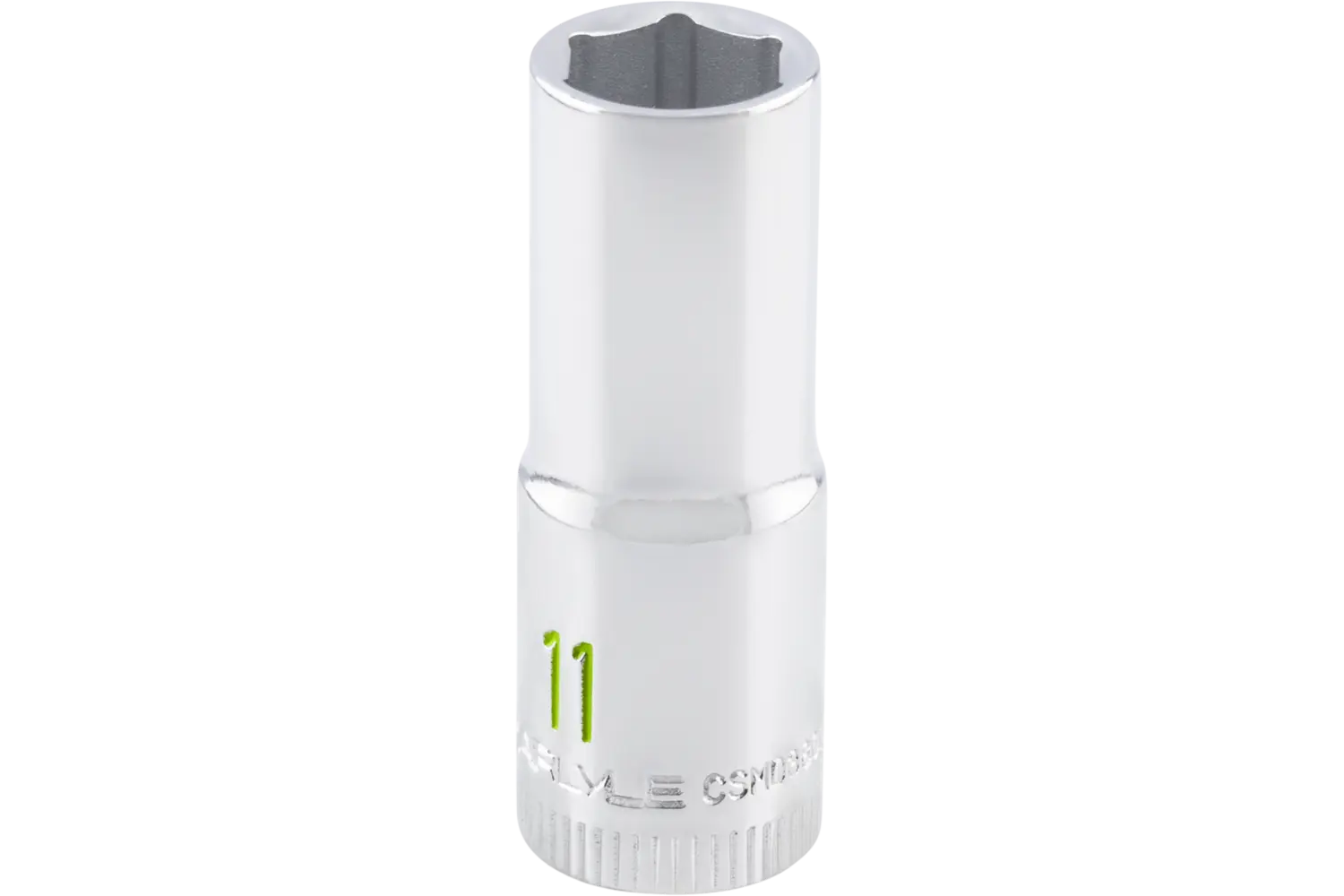 The Carlyle 3/8 in. Drive Impact Sockets are designed for durability and precision. Available in various depths and configurations, they feature a radius-cornered design to reduce wear and enhance grip. Made with CR-V material and a polished chrome finish, these sockets resist rust and provide reliable performance for demanding tasks.