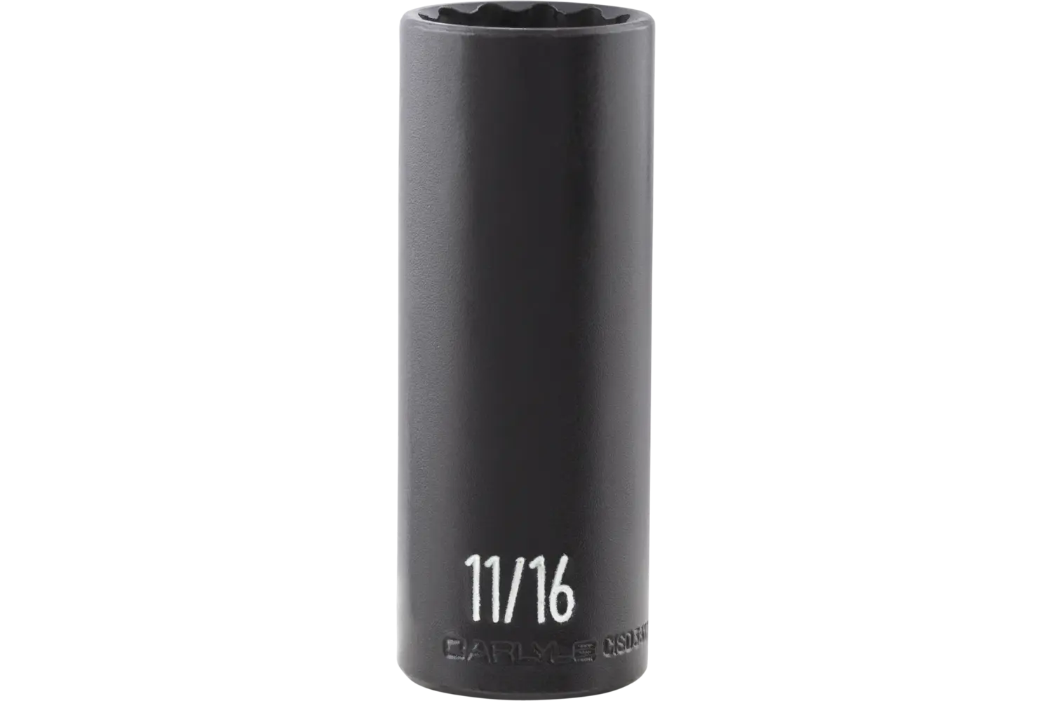 The Carlyle 3/8 in. Drive Impact Sockets are versatile tools for automotive tasks. Available in standard, mid-depth, and deep options, they feature a radius-cornered design to reduce wear on fasteners. Made from CR-V material, these sockets are durable and reliable. The polished chrome finish resists rust, making them a valuable addition to any toolkit.
