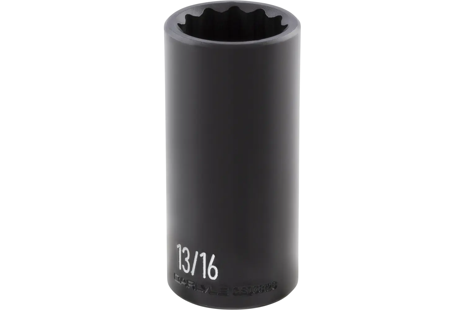 The Carlyle 3/8 in. Drive Impact Sockets are versatile tools for automotive tasks. Available in standard, mid-depth, and deep options, they feature a radius-cornered design to reduce wear on fasteners. Made from CR-V material, these sockets are durable and reliable. The polished chrome finish resists rust, making them a valuable addition to any toolkit.