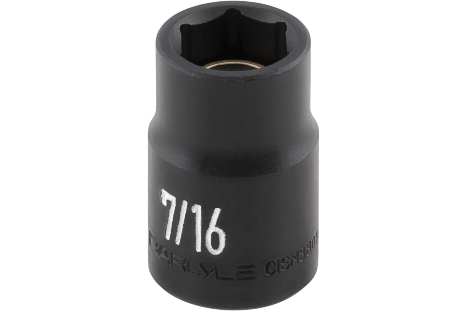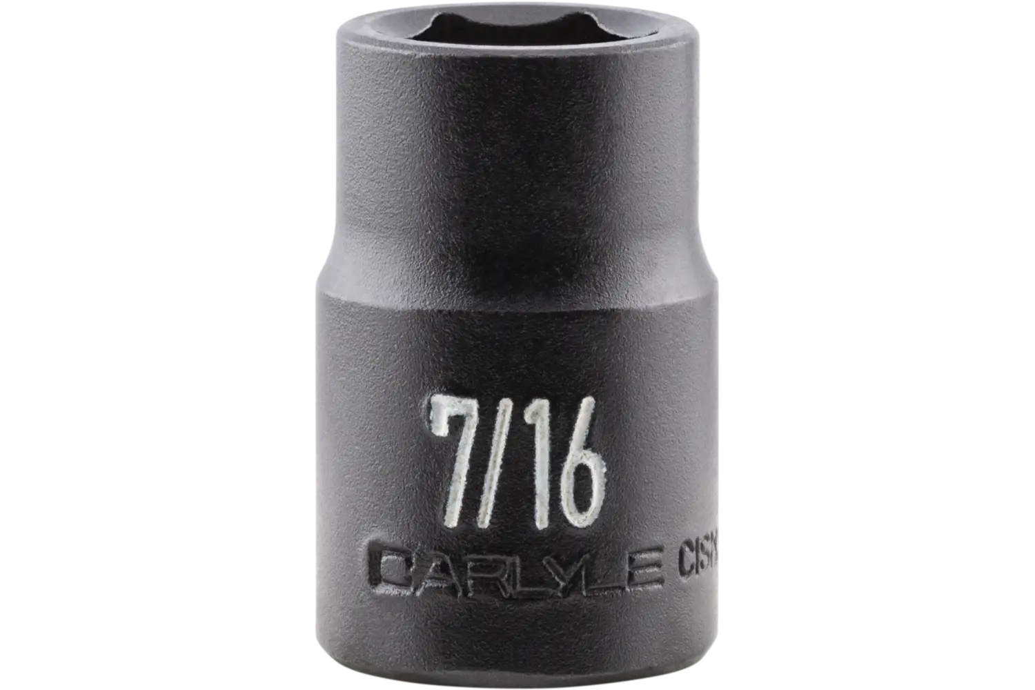 The Carlyle 3/8 in. Drive Impact Sockets are versatile tools for automotive tasks. Available in standard, mid-depth, and deep options, they feature a radius-cornered design to reduce wear on fasteners. Made from CR-V material, these sockets are durable and reliable. The polished chrome finish resists rust, making them a valuable addition to any toolkit.