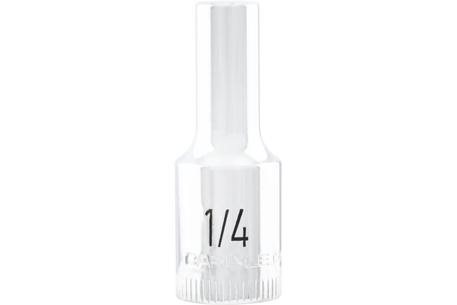 The Carlyle 3/8 in. Drive Impact Sockets are versatile tools for automotive tasks. Available in standard, mid-depth, and deep options, they feature a radius-cornered design to reduce wear on fasteners. Made from CR-V material, these sockets are durable and reliable. The polished chrome finish resists rust, making them a valuable addition to any toolkit.