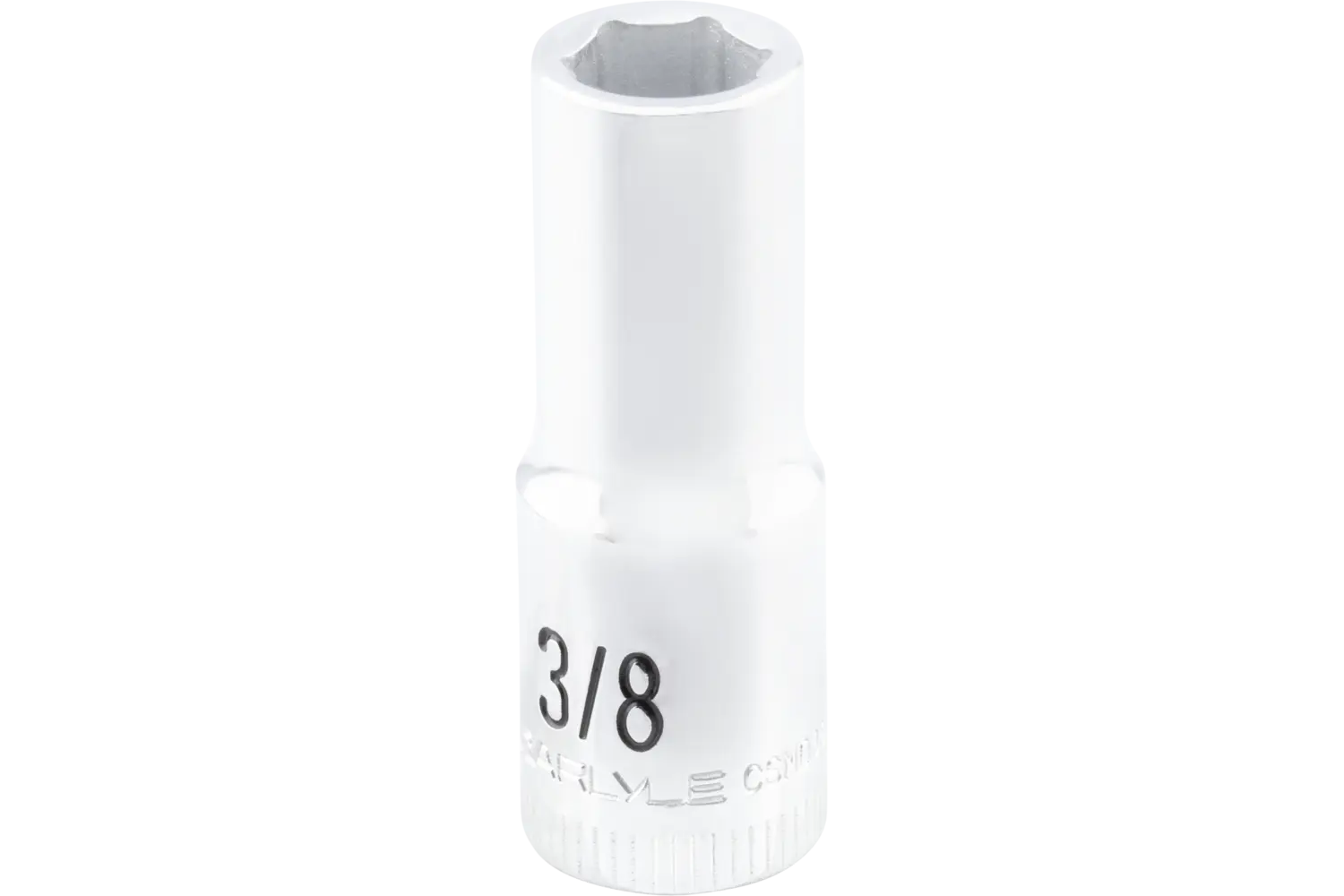 The Carlyle 3/8 in. Drive Impact Sockets are versatile tools for automotive tasks. Available in standard, mid-depth, and deep options, they feature a radius-cornered design to reduce wear on fasteners. Made from CR-V material, these sockets are durable and reliable. The polished chrome finish resists rust, making them a valuable addition to any toolkit.