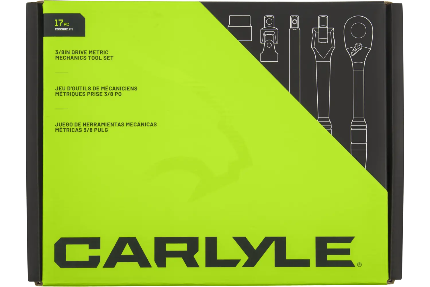 Built with superior quality and designed with input from industry pros, the Carlyle 3/8 in. Drive Standard Depth Chrome Socket Set - Metric delivers high performance and dependability, even in the harshest work environments. Engineered with a highly polished chrome-plated finish for outstanding rust resistance, this set combines toughness with sleek durability. The radius-cornered 12-point or 6-point socket design provides better fastener control and reduces wear, while the 60-tooth teardrop ratchet, extensions, flex handle, and universal joint offer the versatility needed to tackle any task. Housed in a rugged blow-molded case for easy organization and portability, this set gives you the power and precision you need—all at a price that works as hard as you do.