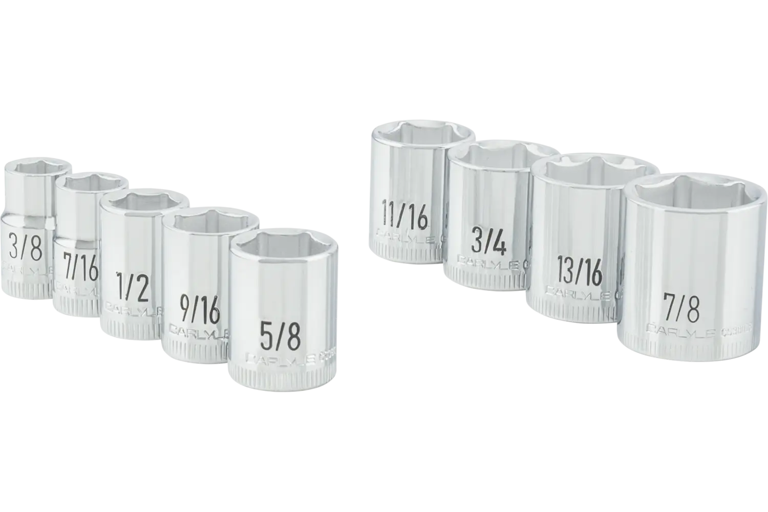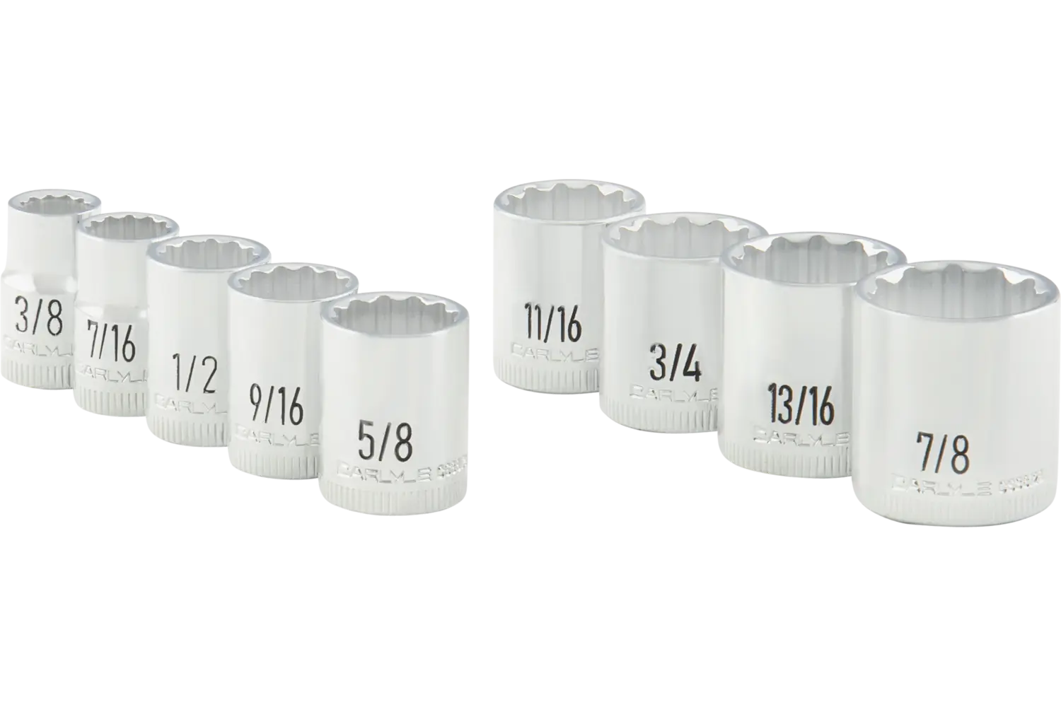 | 3/8in, 7/16in, 1/2in, 9/16in, 5/8in, 11/16in, 3/4in, 13/16in, 7/8in | Chrome | 12 Point | Standard | 9 PC | EVA Foam | |