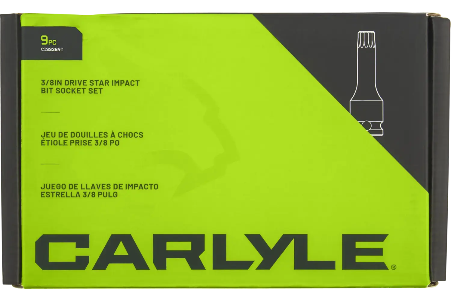 The Carlyle 3/8 in. Drive Internal Star Impact Socket Set is engineered for durability and precision, making it a reliable tool for demanding applications. Forged from chrome molybdenum alloy steel, this 9-piece set delivers exceptional strength and long-lasting performance. The radius corner design offers a firm grip on fasteners, reducing wear and maximizing torque. Chamfered openings allow for quick and seamless connections, while the included blow mold case keeps tools organized and ready for action. Designed for professionals and DIYers, this set is built to handle tough jobs with ease.