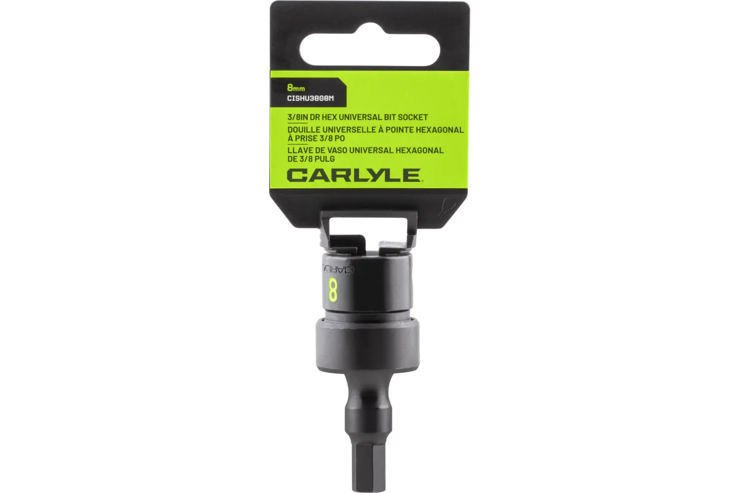 The Carlyle 3/8 in. Drive Universal Hex Bit Impact Socket - Metric is a durable tool for tough tasks. Made from chrome molybdenum alloy steel, it offers strength and reliability. The radius corner design enhances grip, while chamfered openings allow for quick fastening. Available in various sizes, this socket is built for demanding projects.